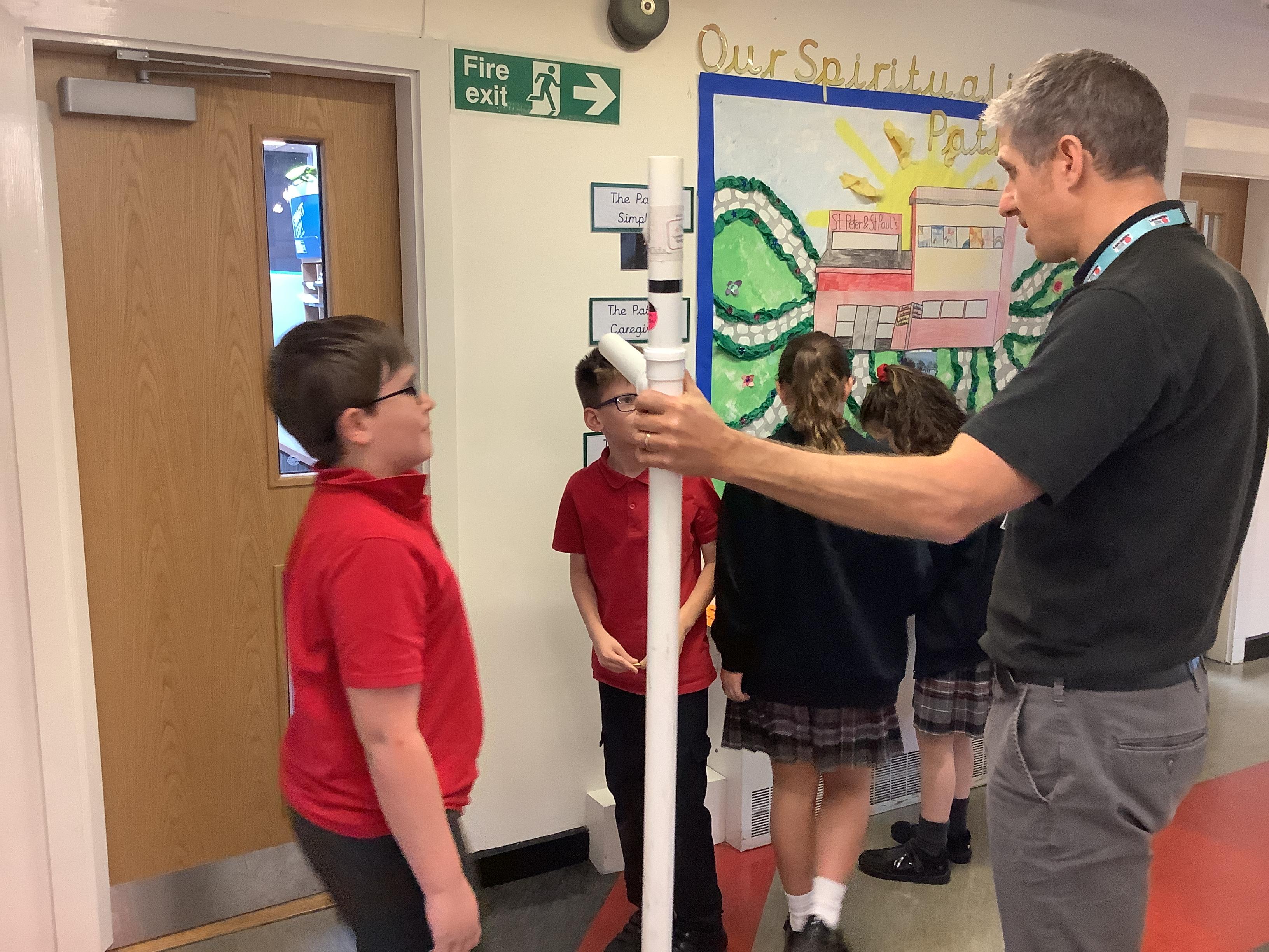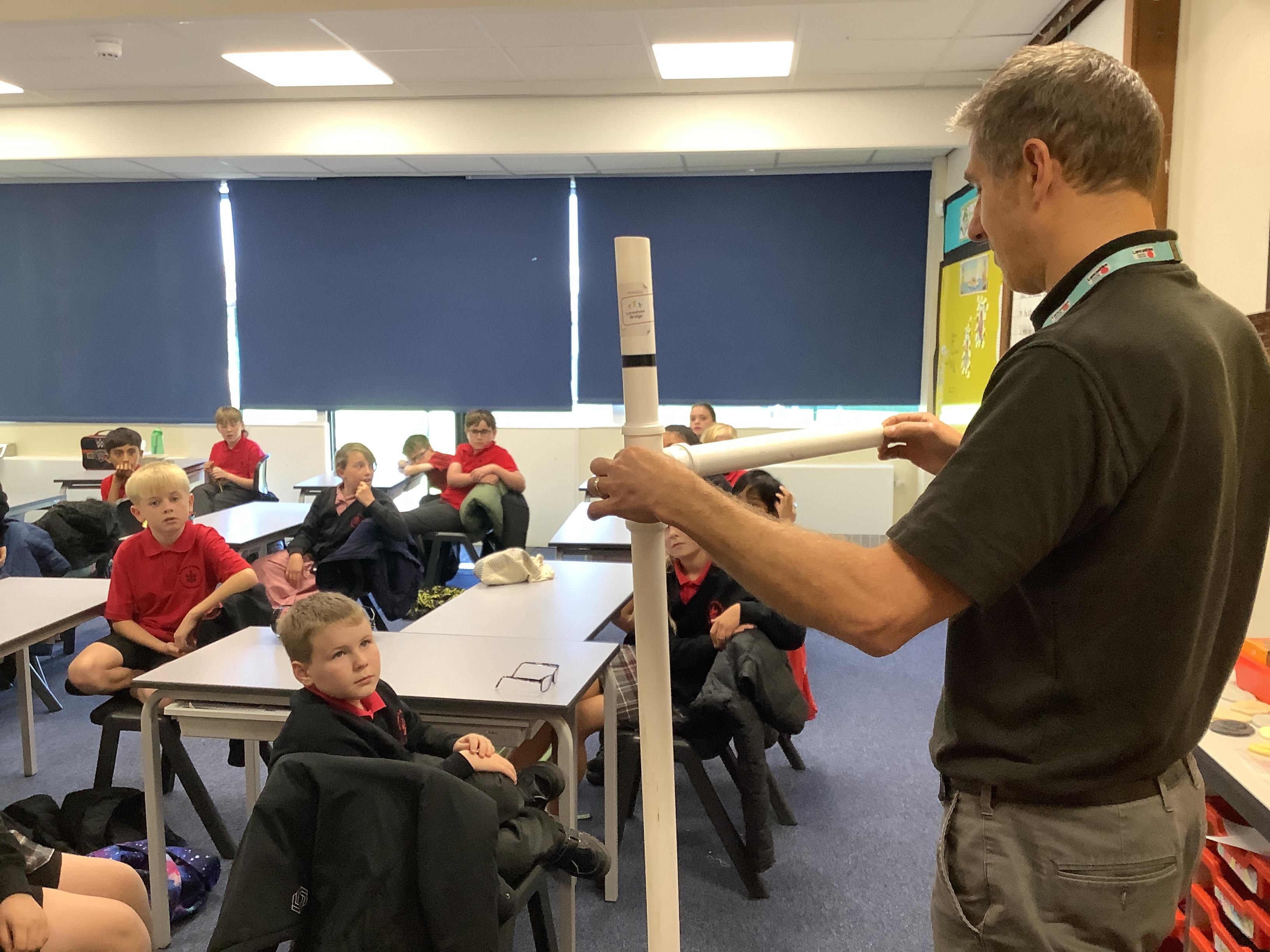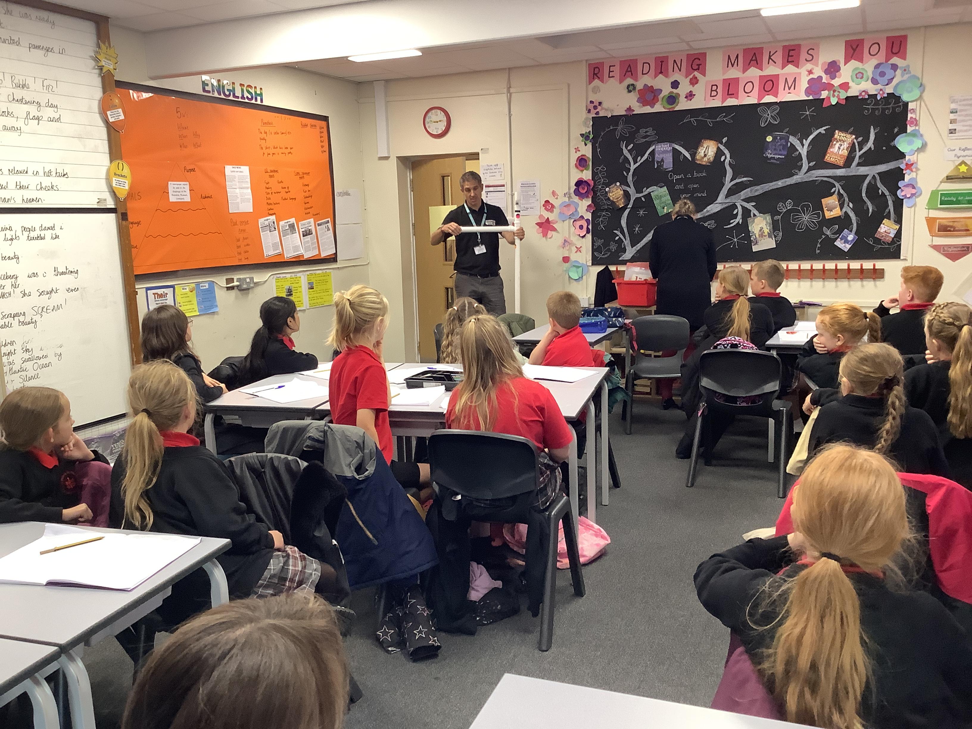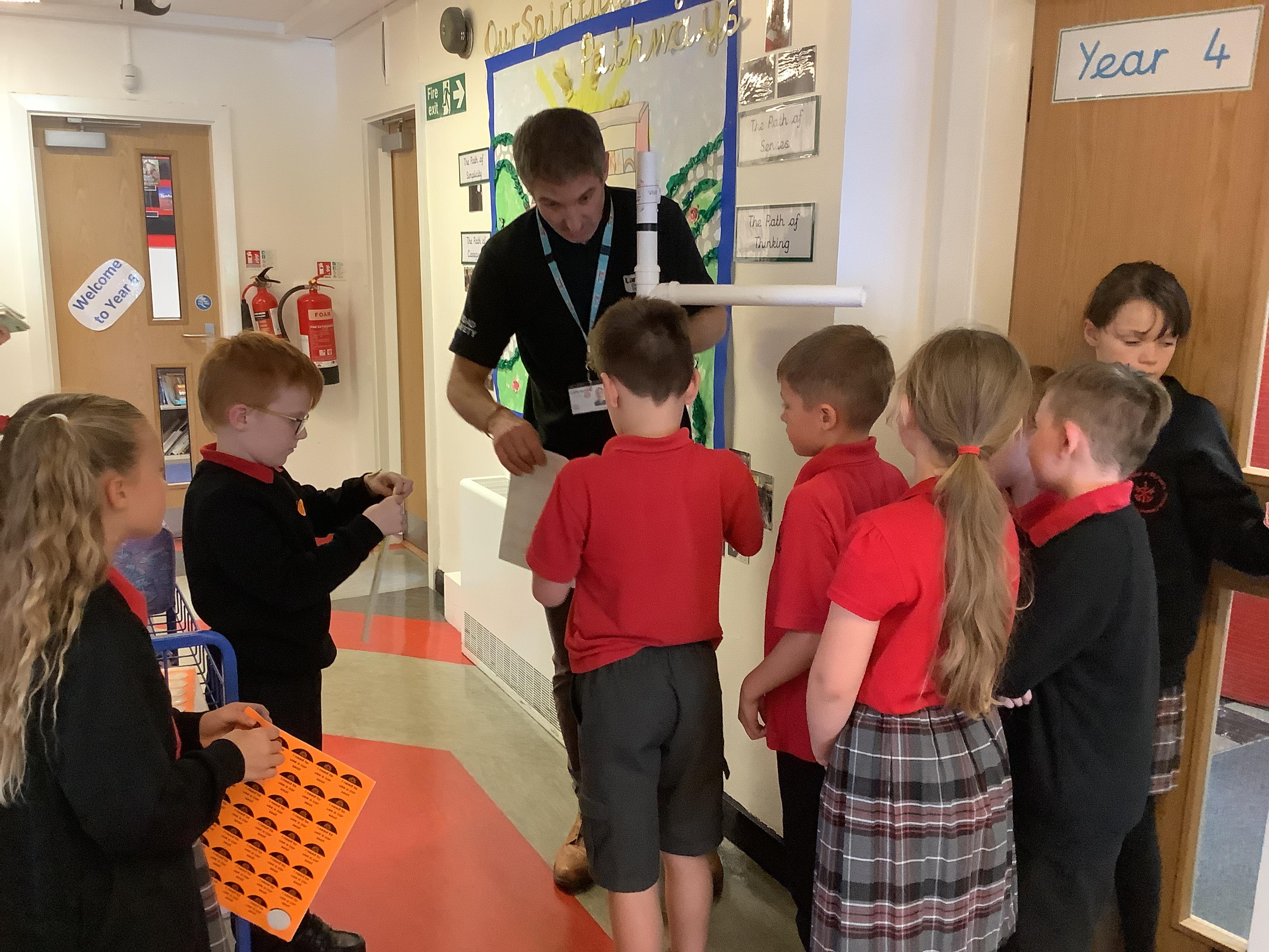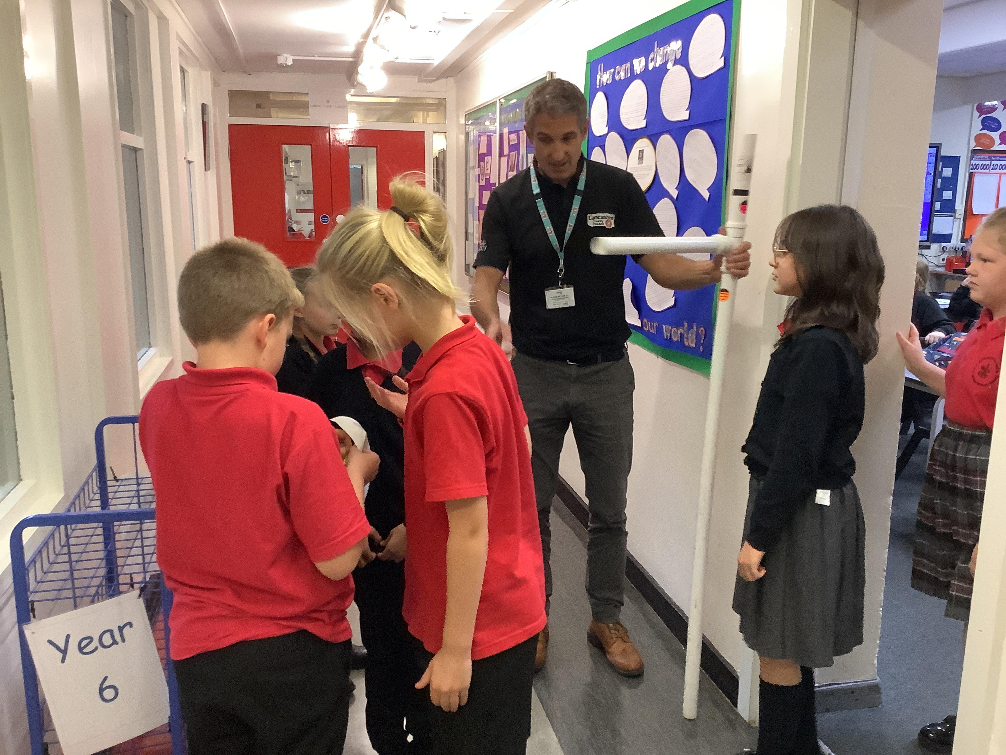 Danny, one of the road safety officers from Lancashire County Council, has been into school to speak to KS2 about the legal requirements of having to use a booster seat when travelling in a car. All children have been measured and if they are less than 135cm have been given an orange sticker to show parents they still need to use a booster seat due to their height.