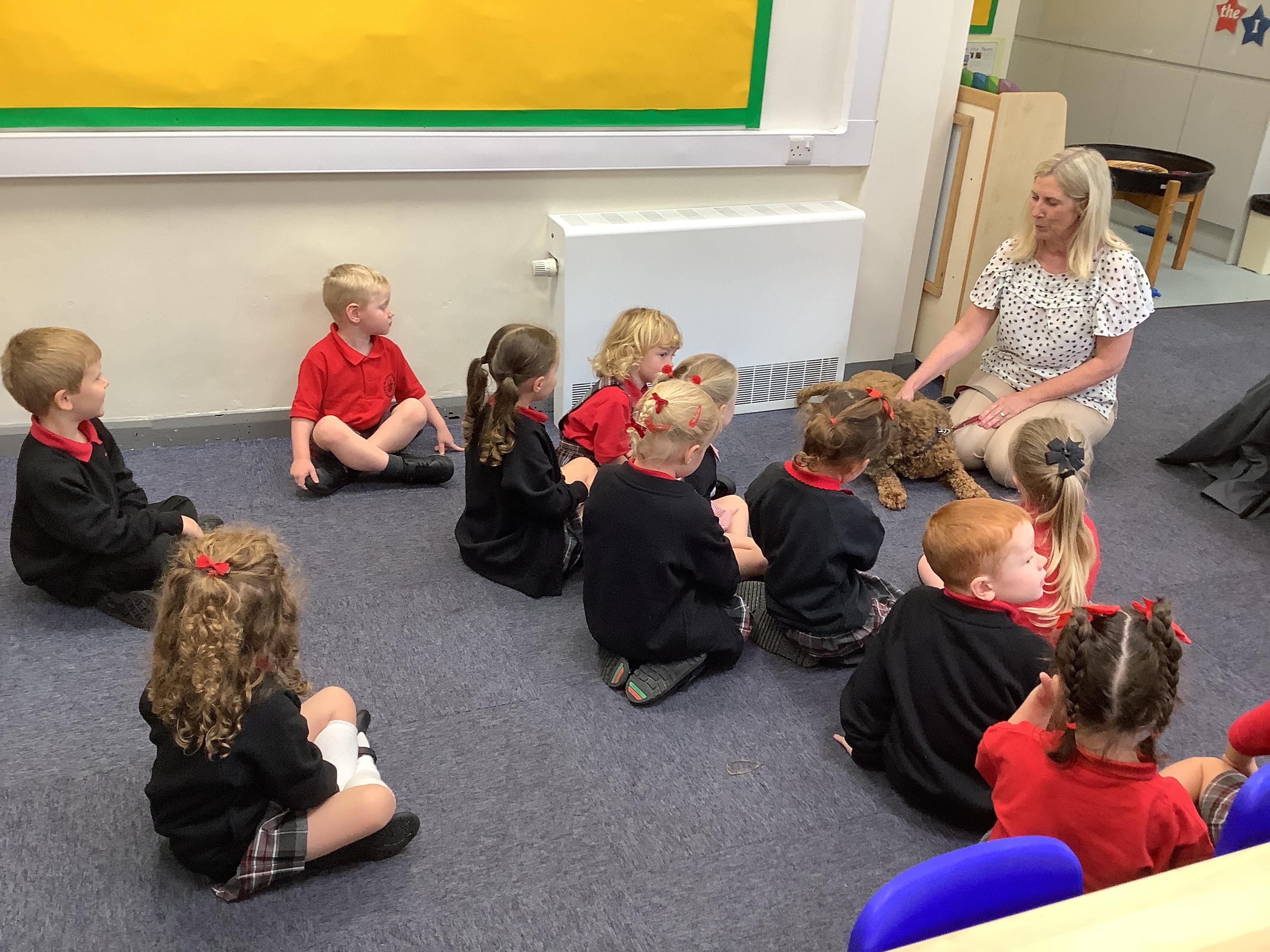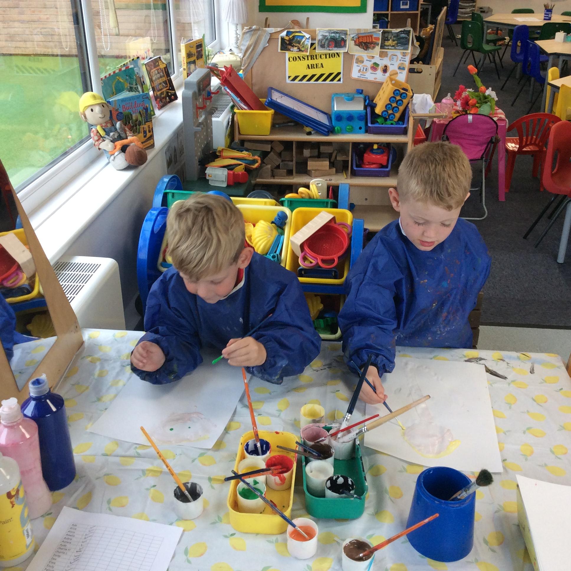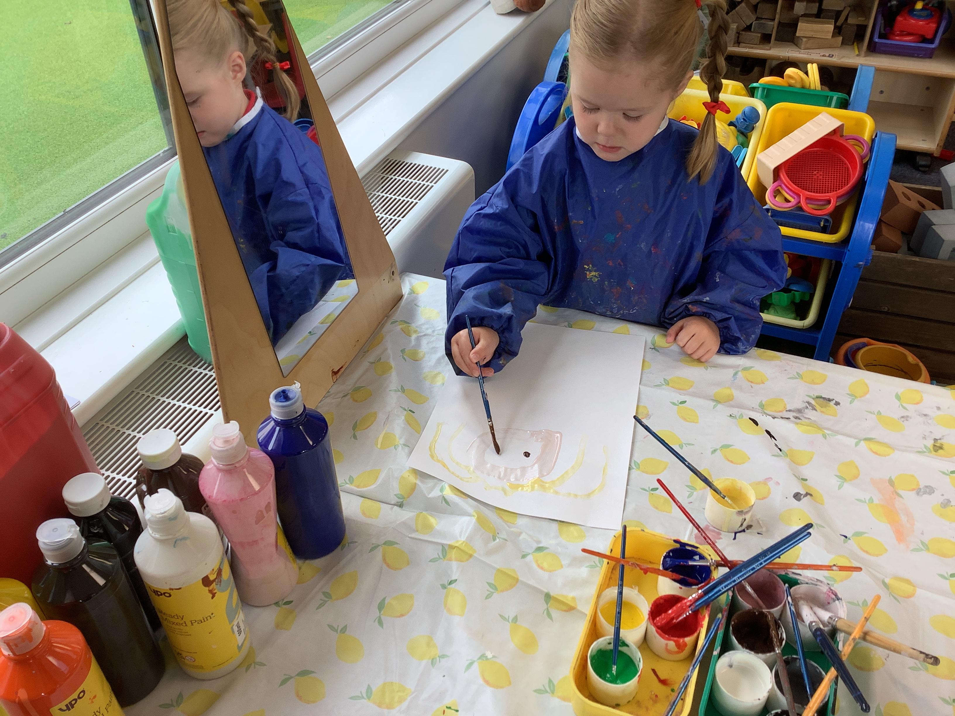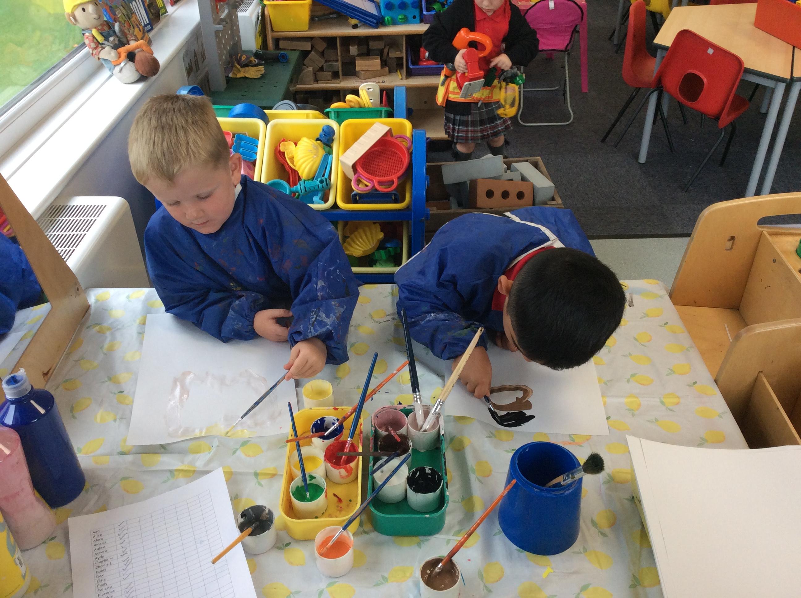 Enjoying meeting our whole class and Larry the dog. Painting ourselves and playing outside. What a lovely week we have had!