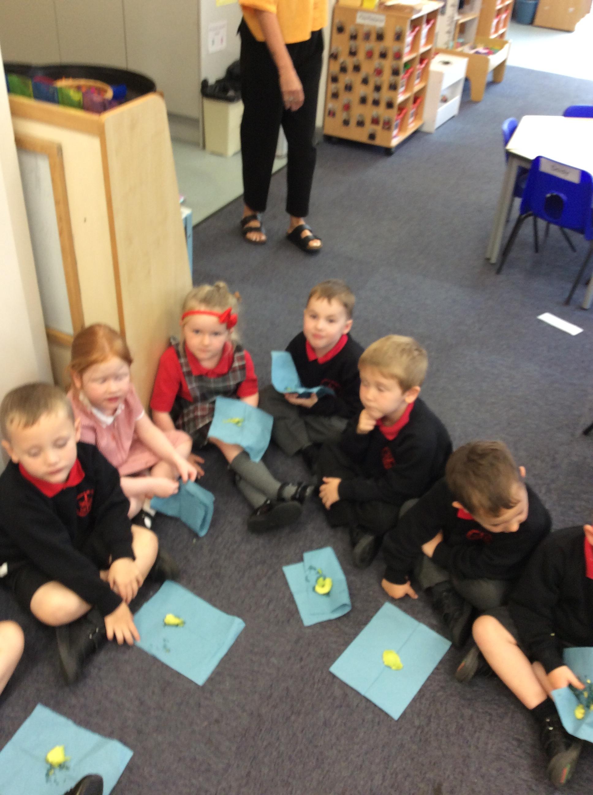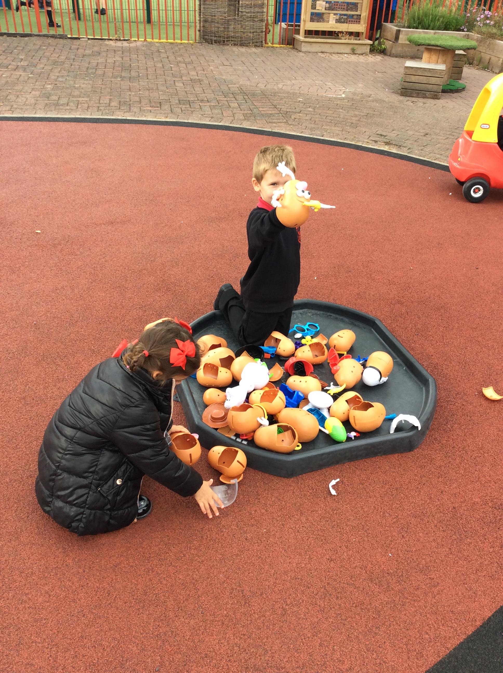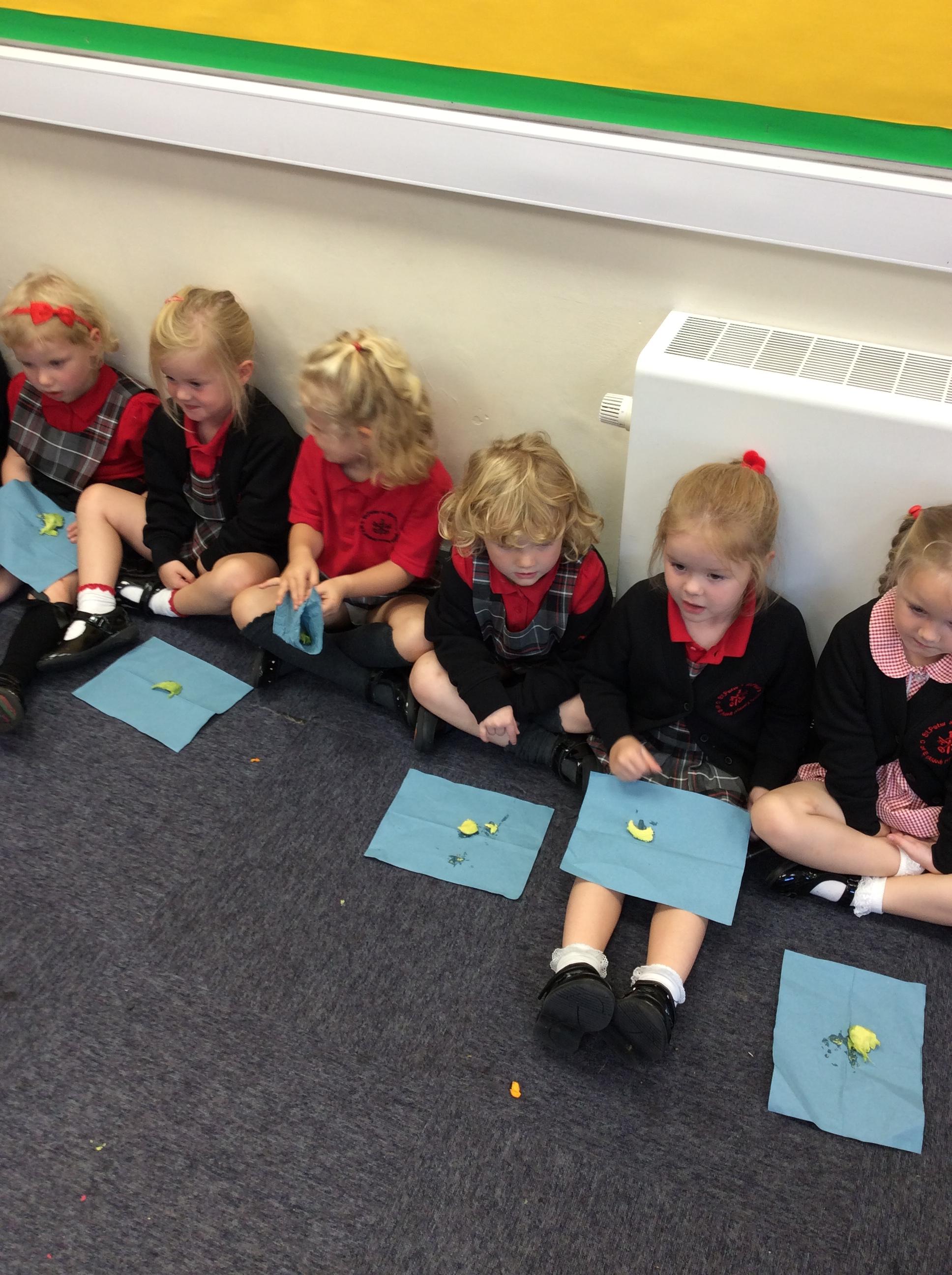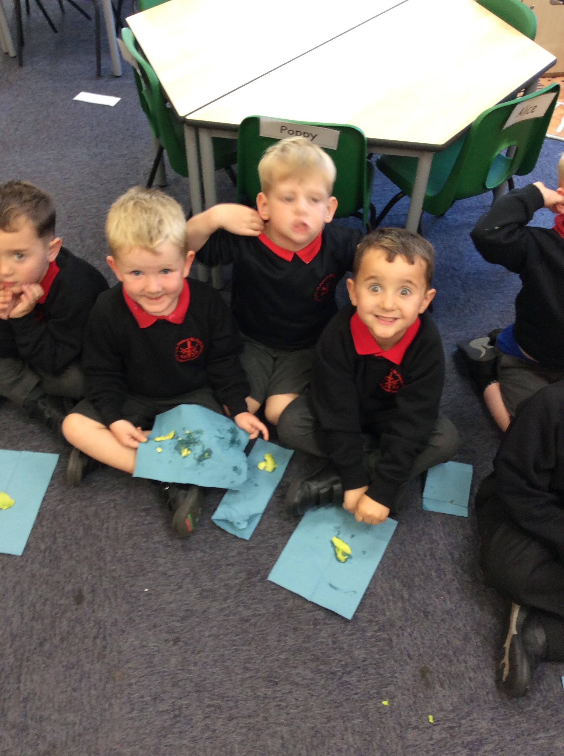 Enjoying meeting our whole class and Larry the dog. Painting ourselves and playing outside. What a lovely week we have had!