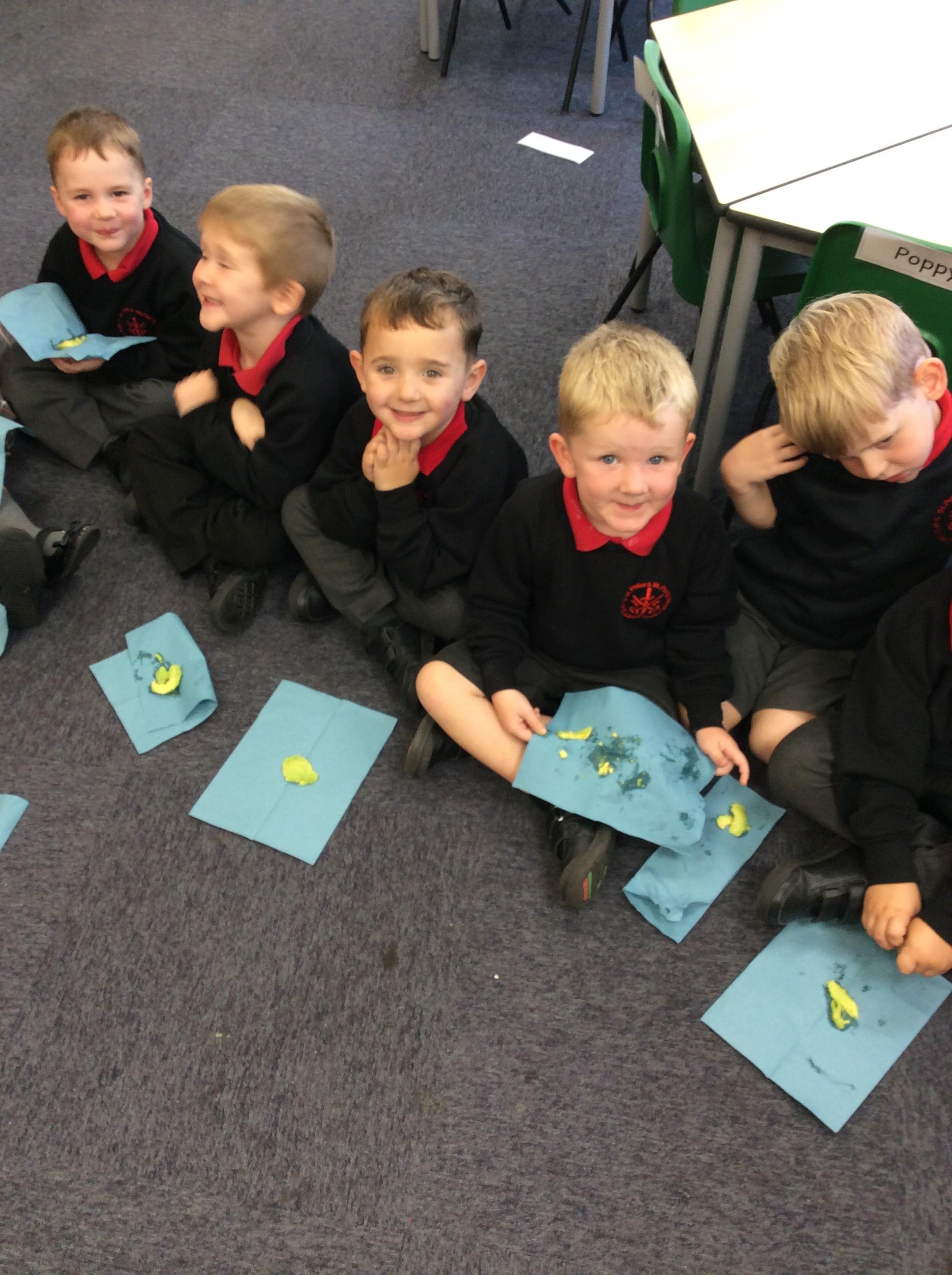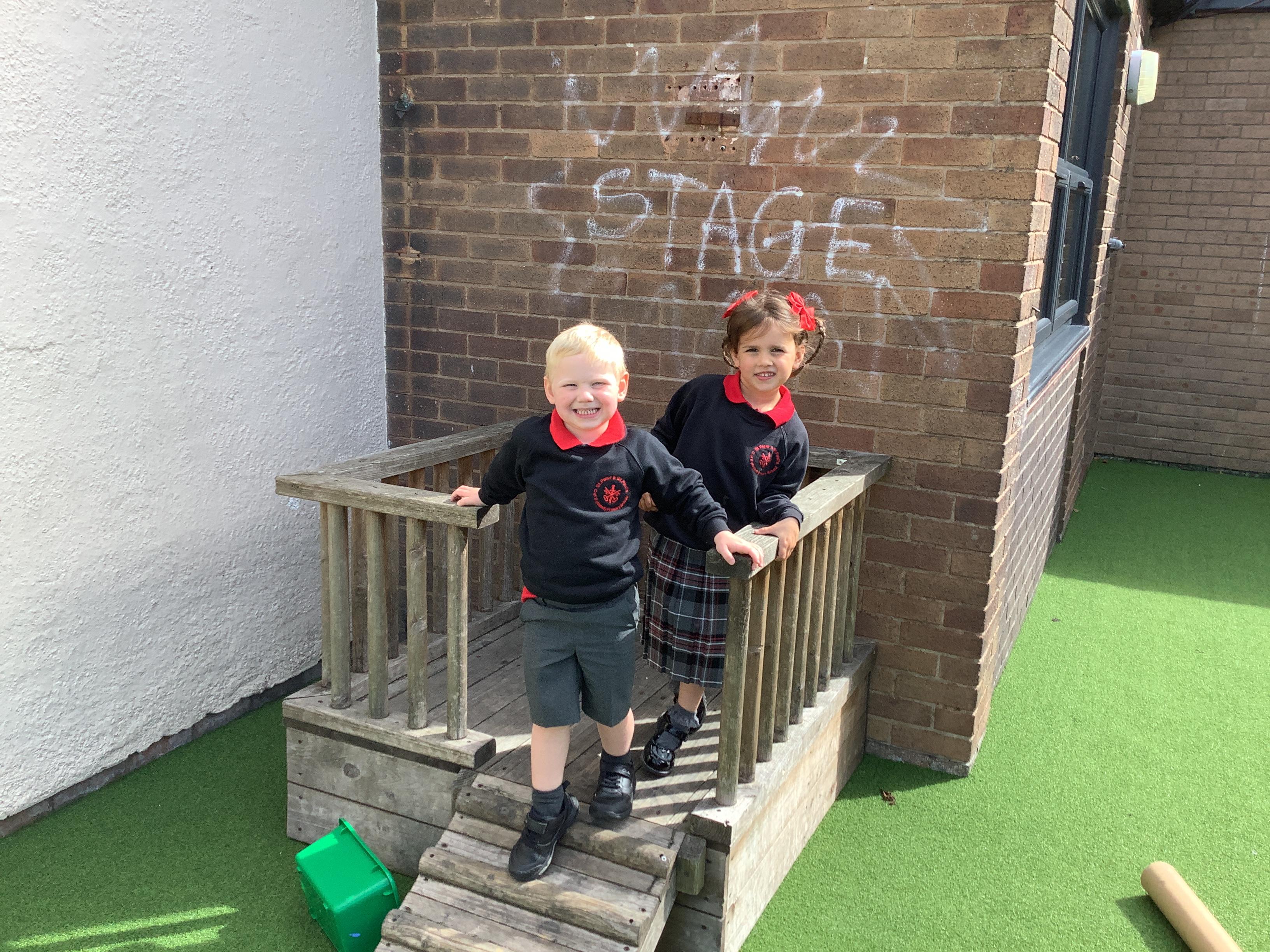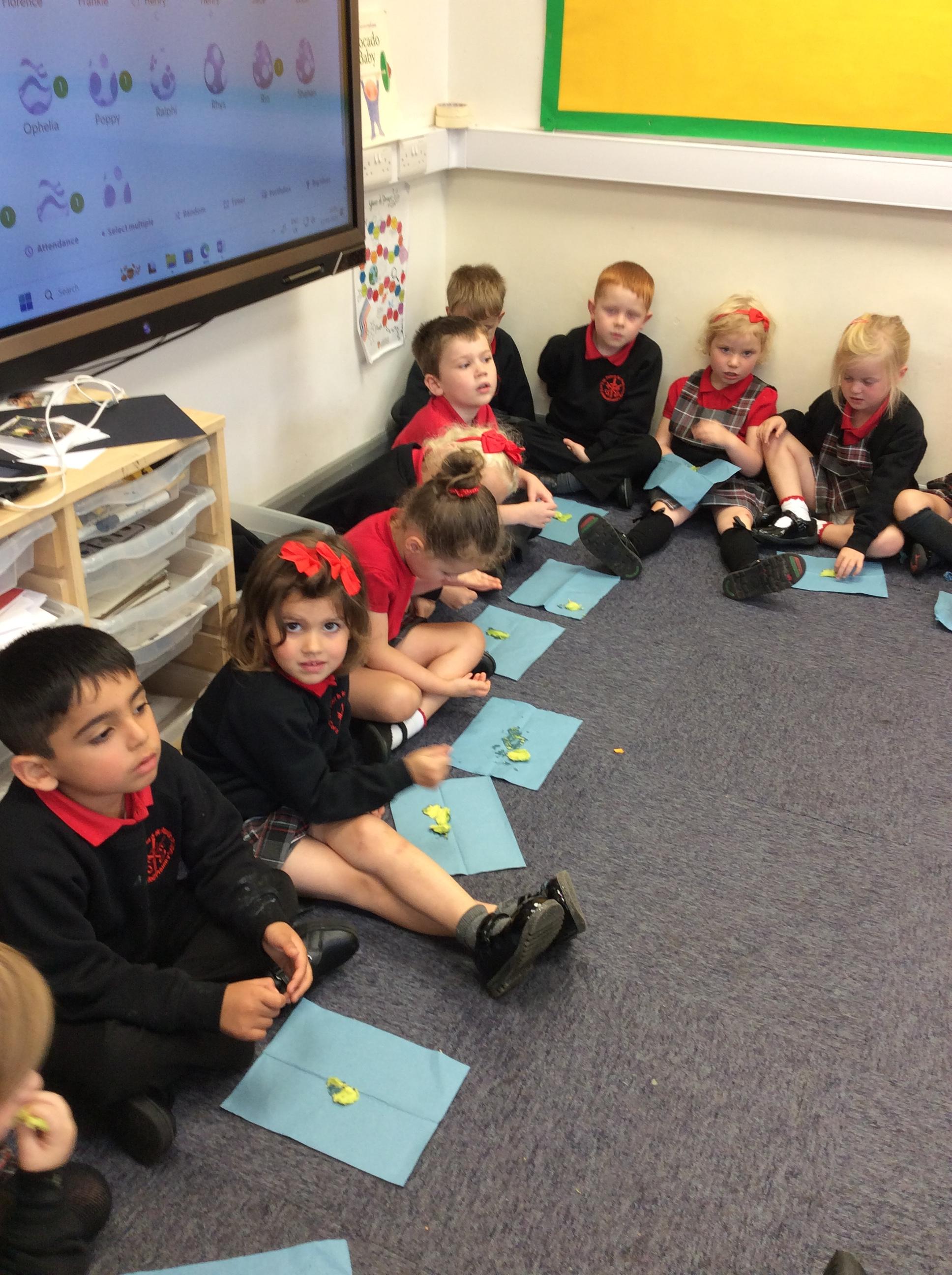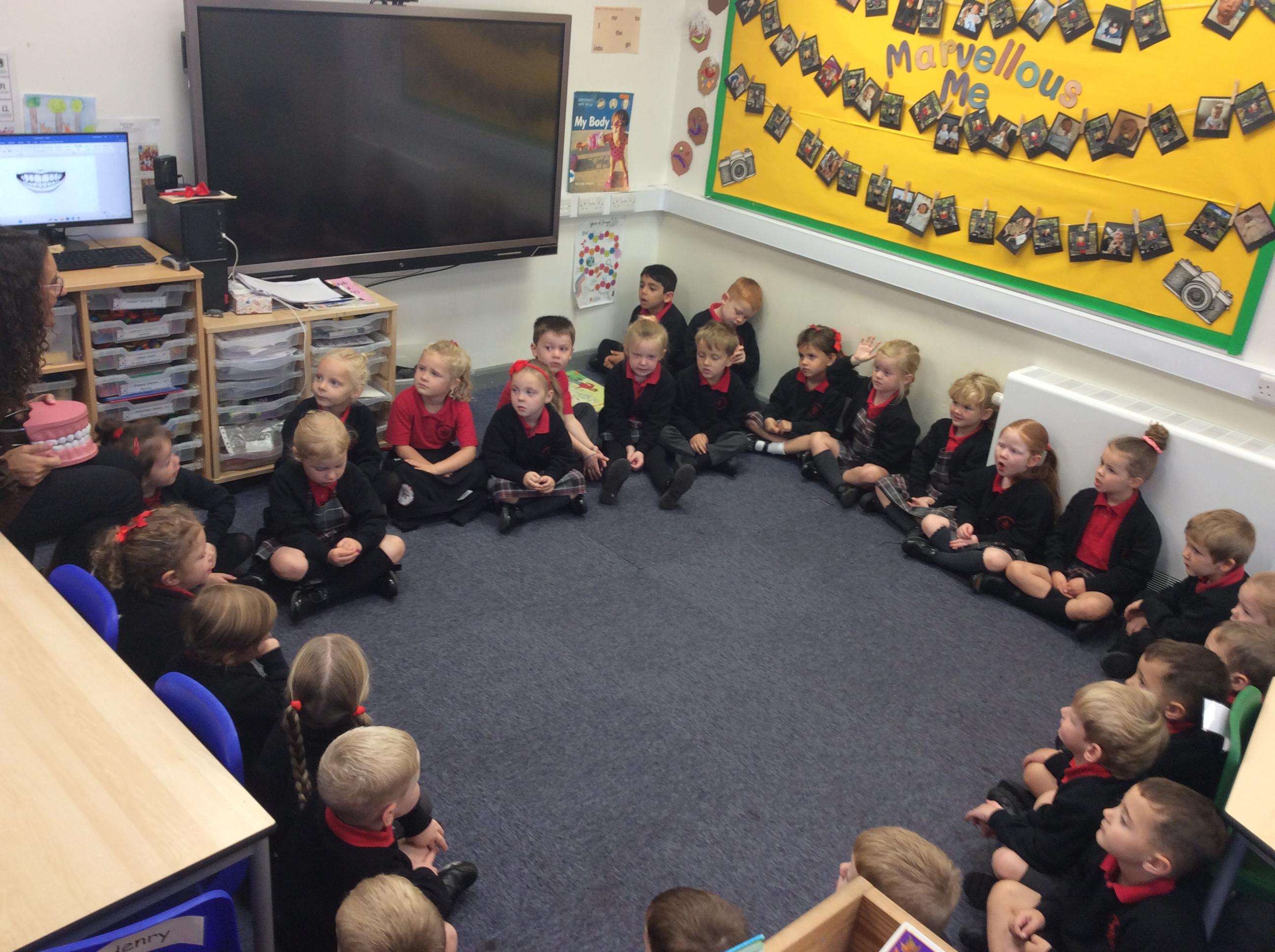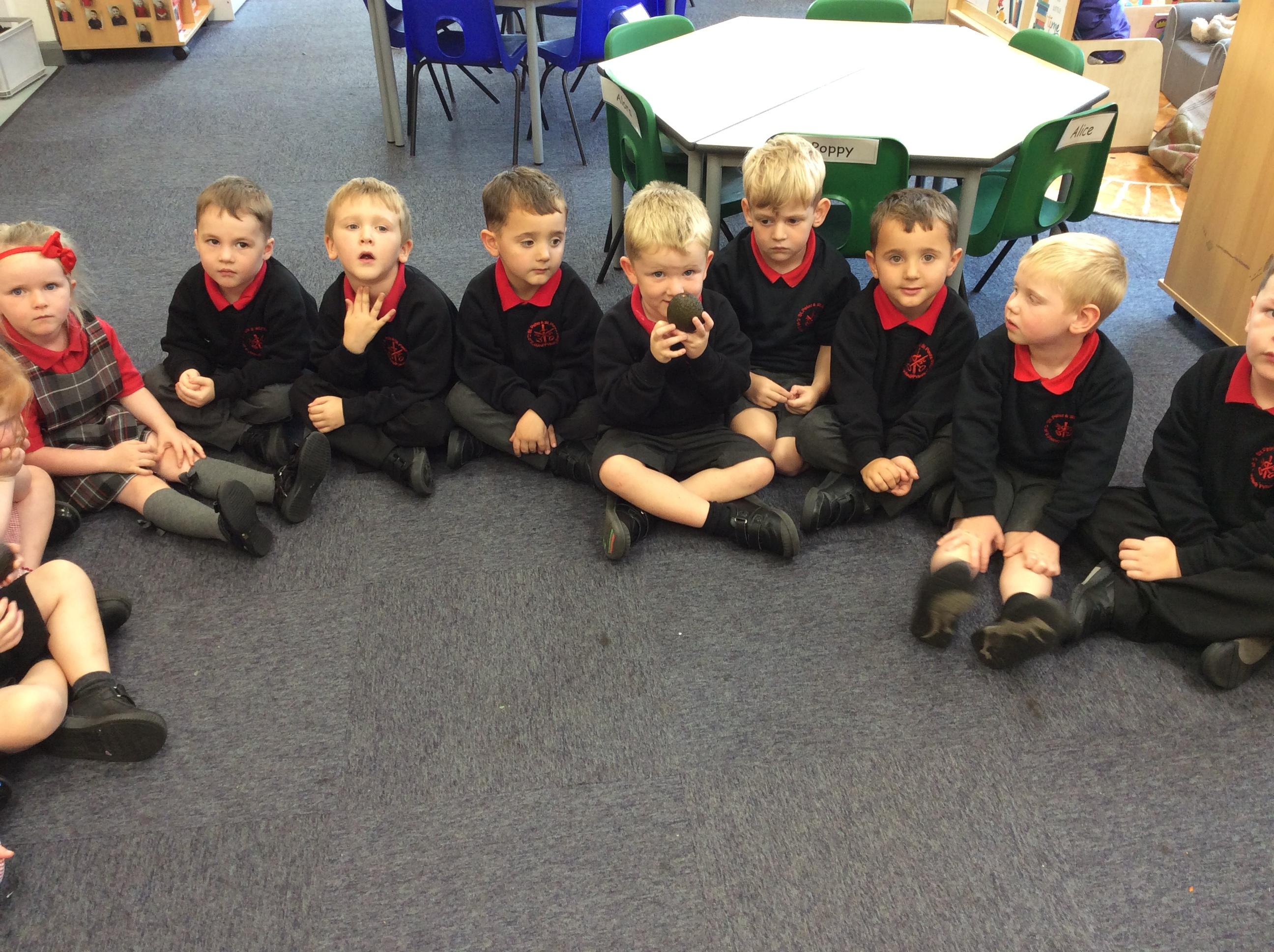 Enjoying meeting our whole class and Larry the dog. Painting ourselves and playing outside. What a lovely week we have had!