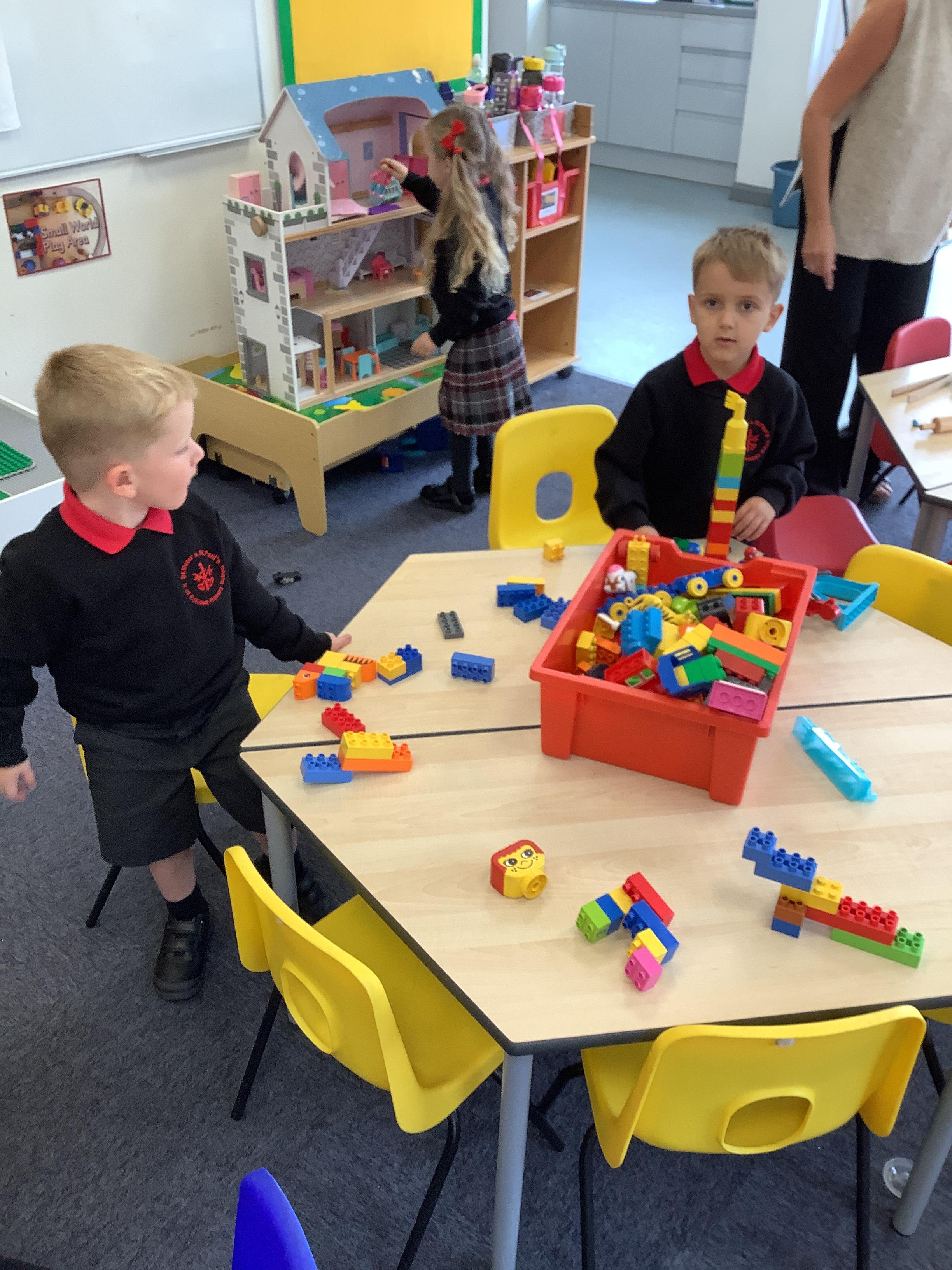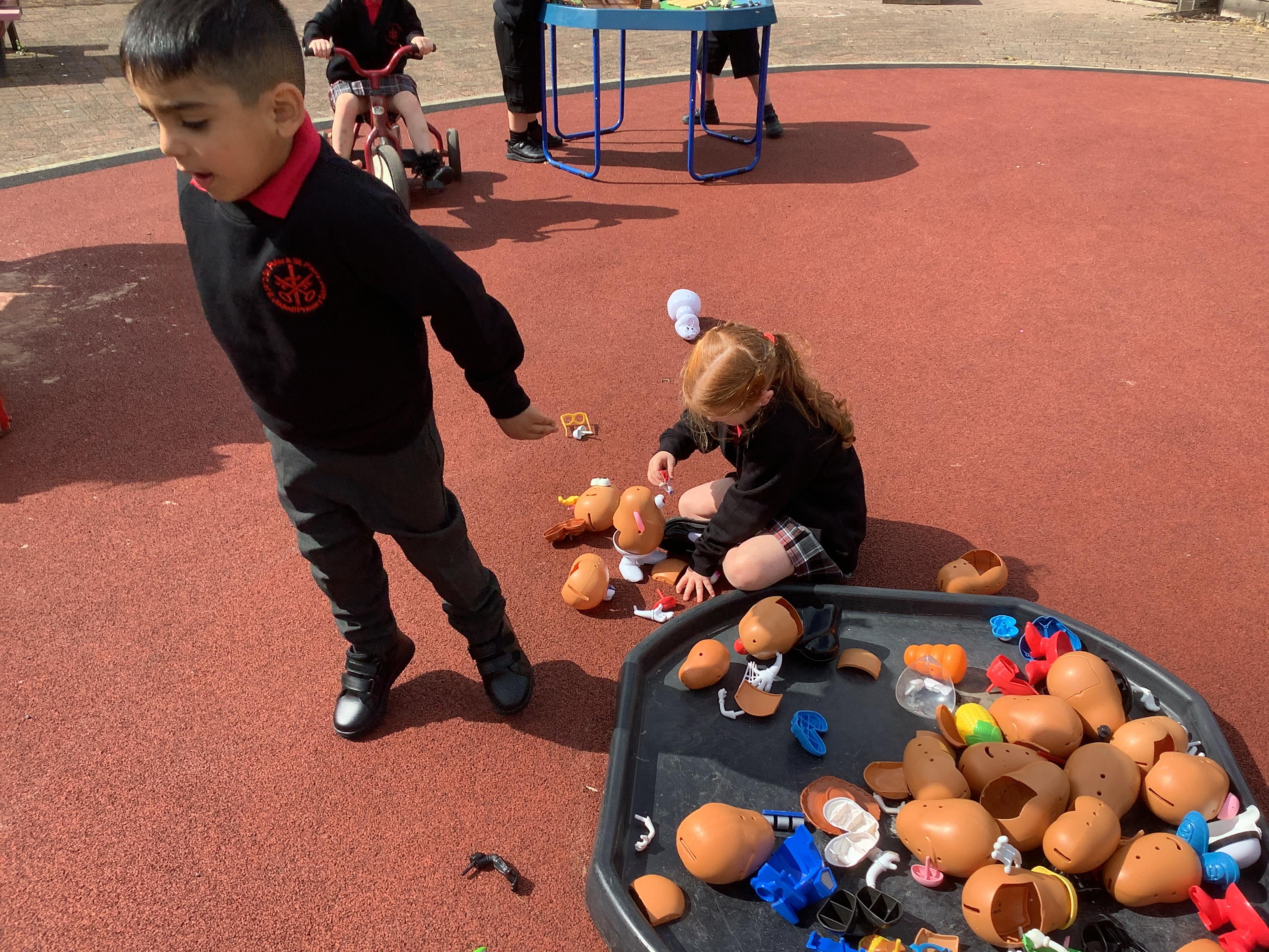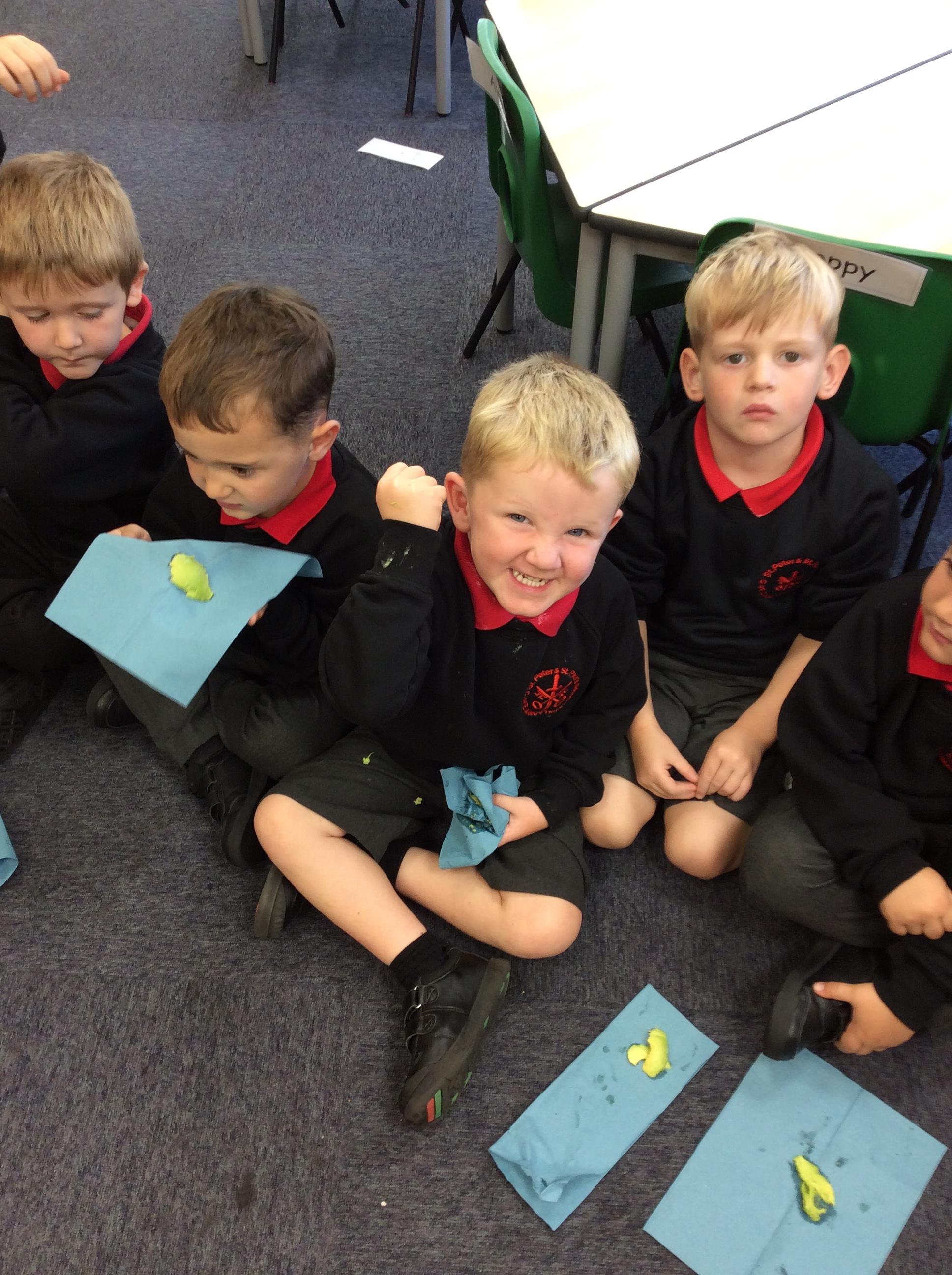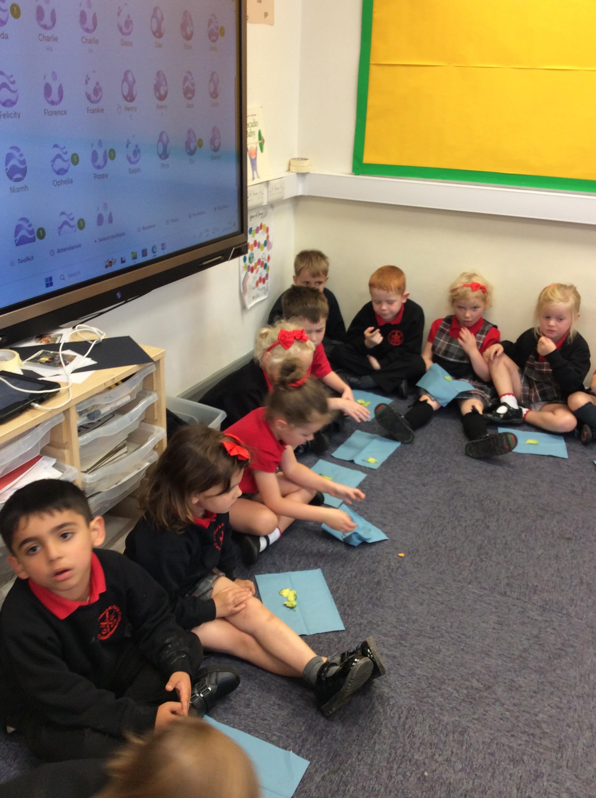 Enjoying meeting our whole class and Larry the dog. Painting ourselves and playing outside. What a lovely week we have had!