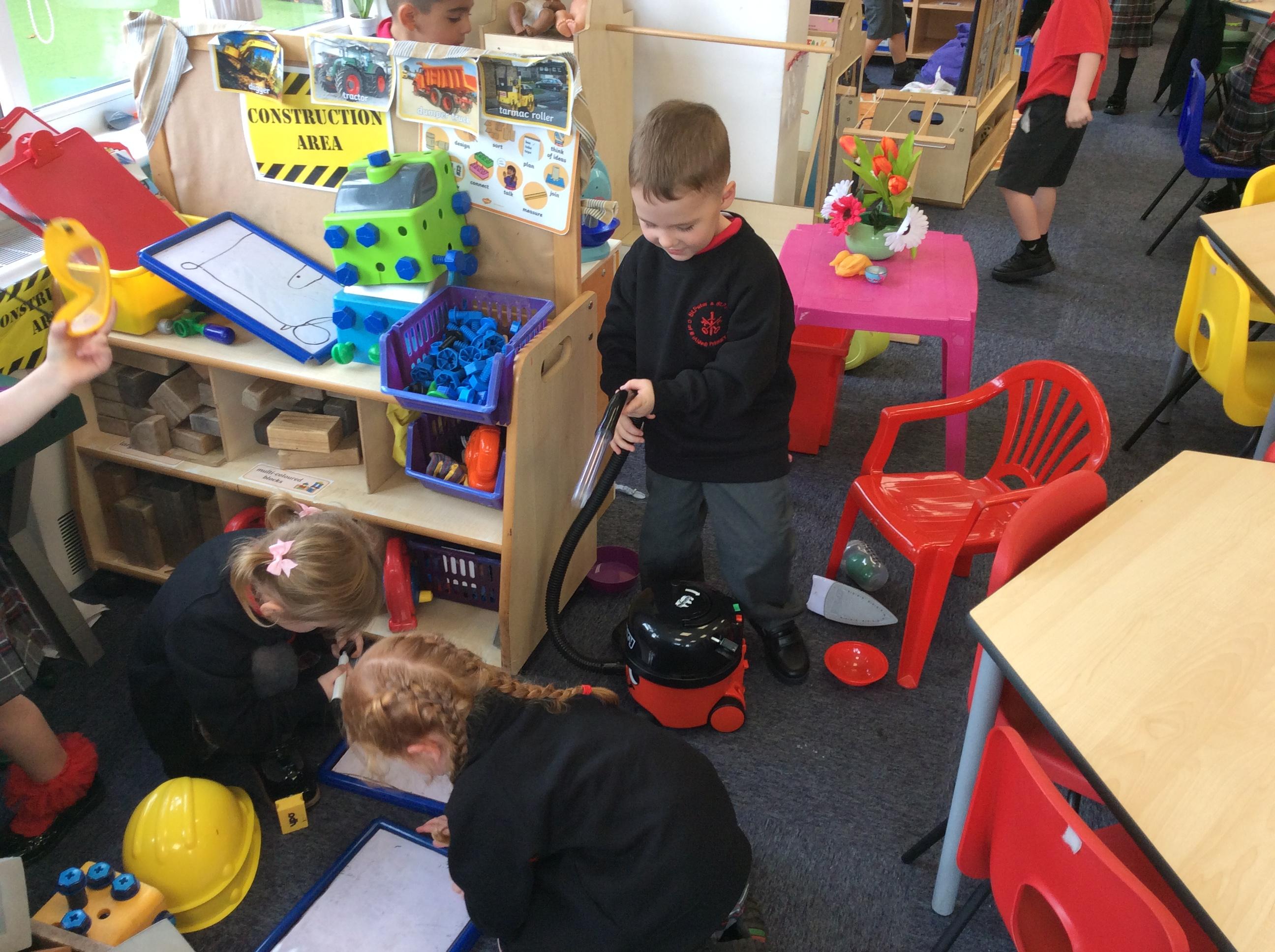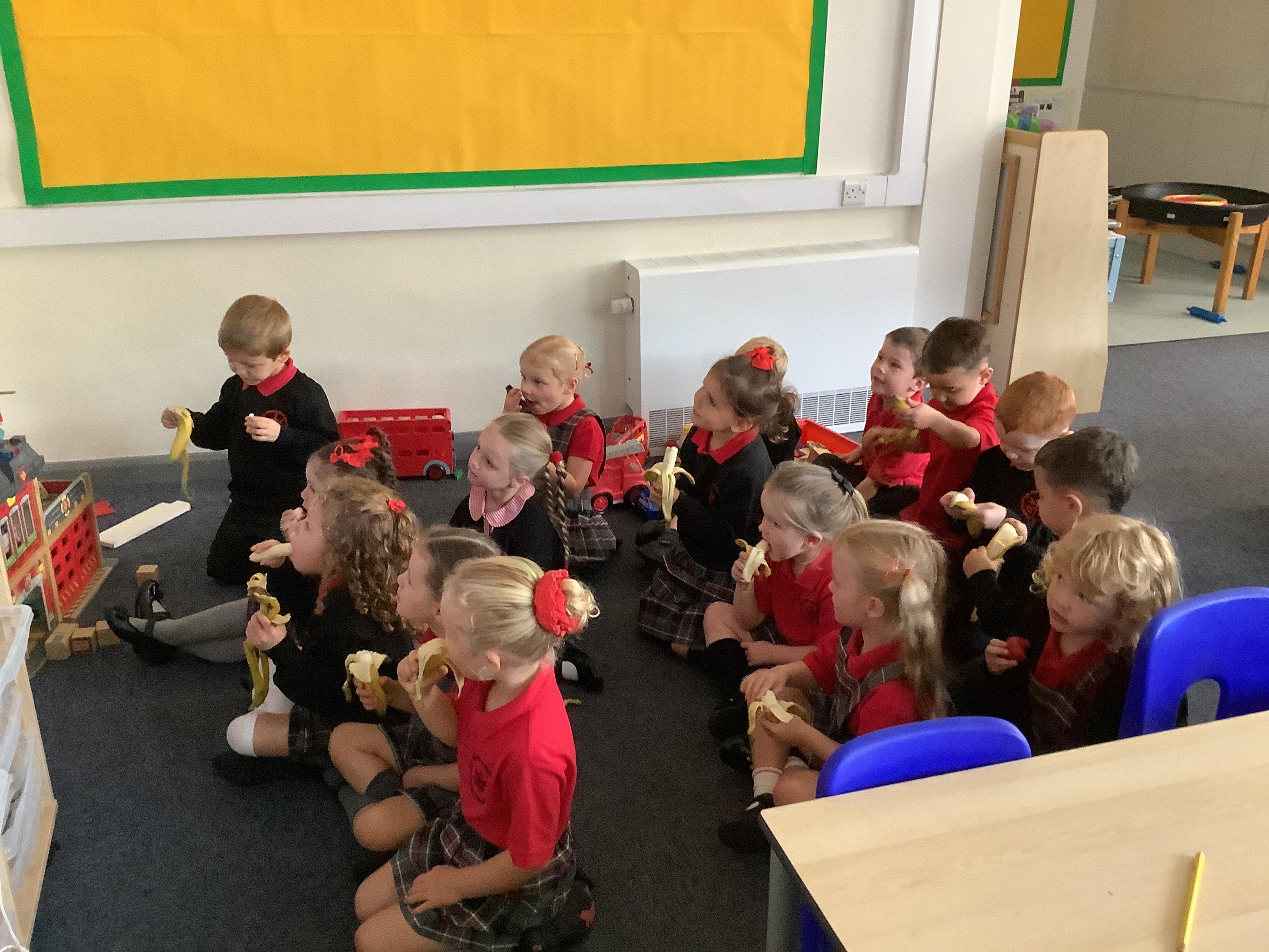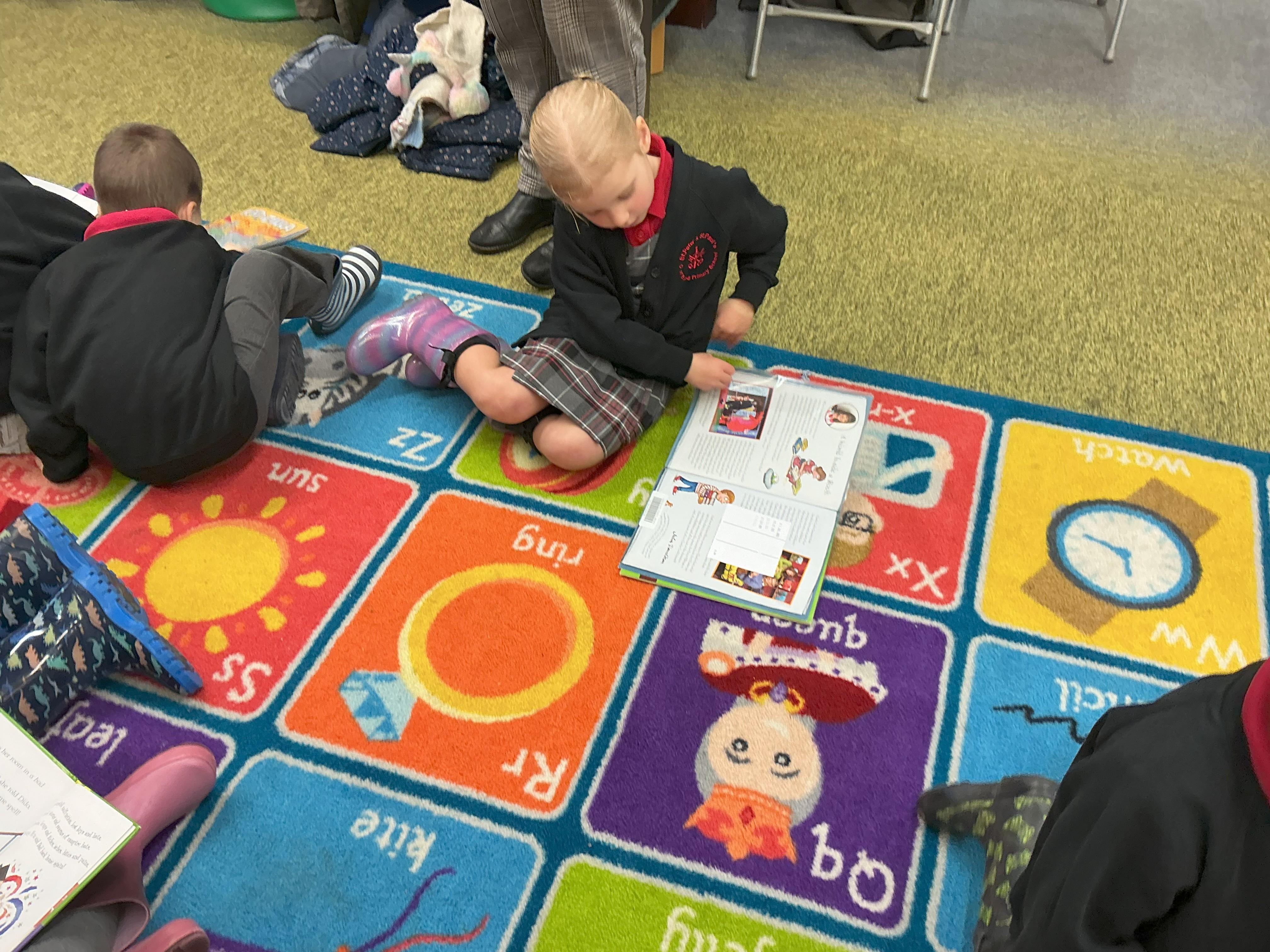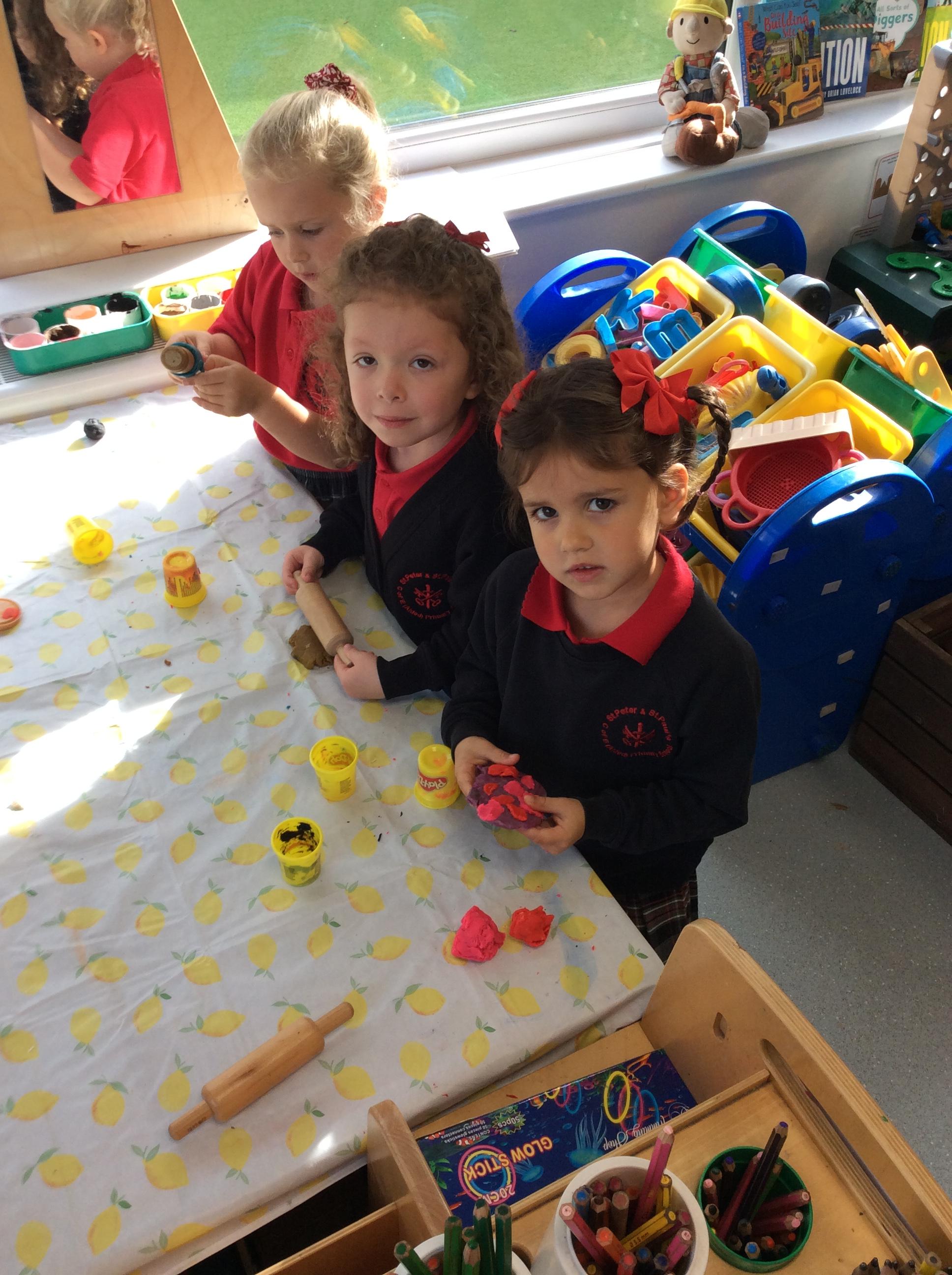 Enjoying meeting our whole class and Larry the dog. Painting ourselves and playing outside. What a lovely week we have had!