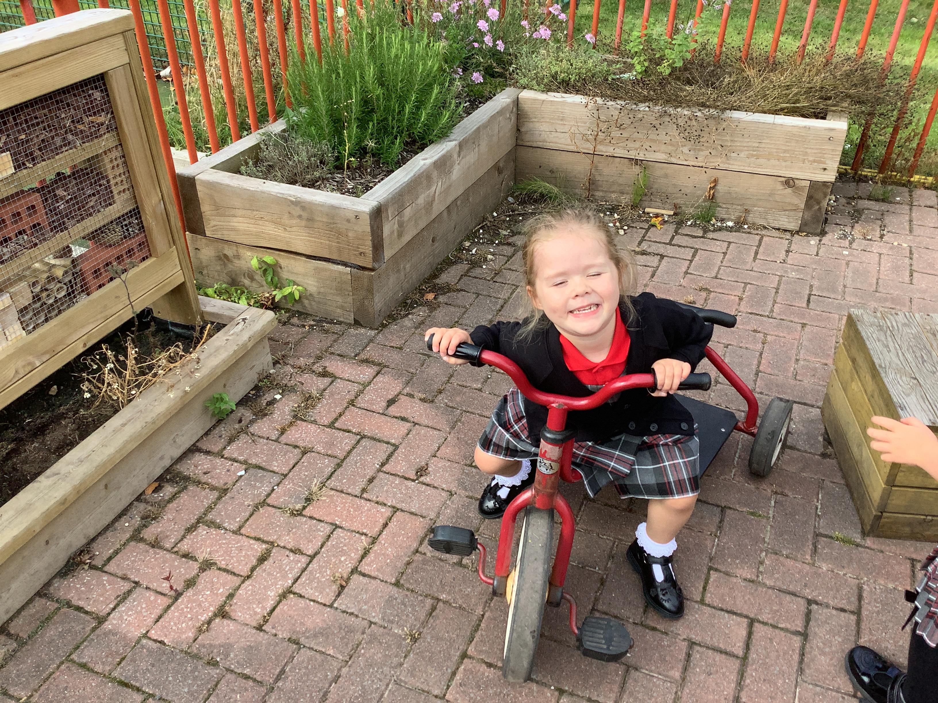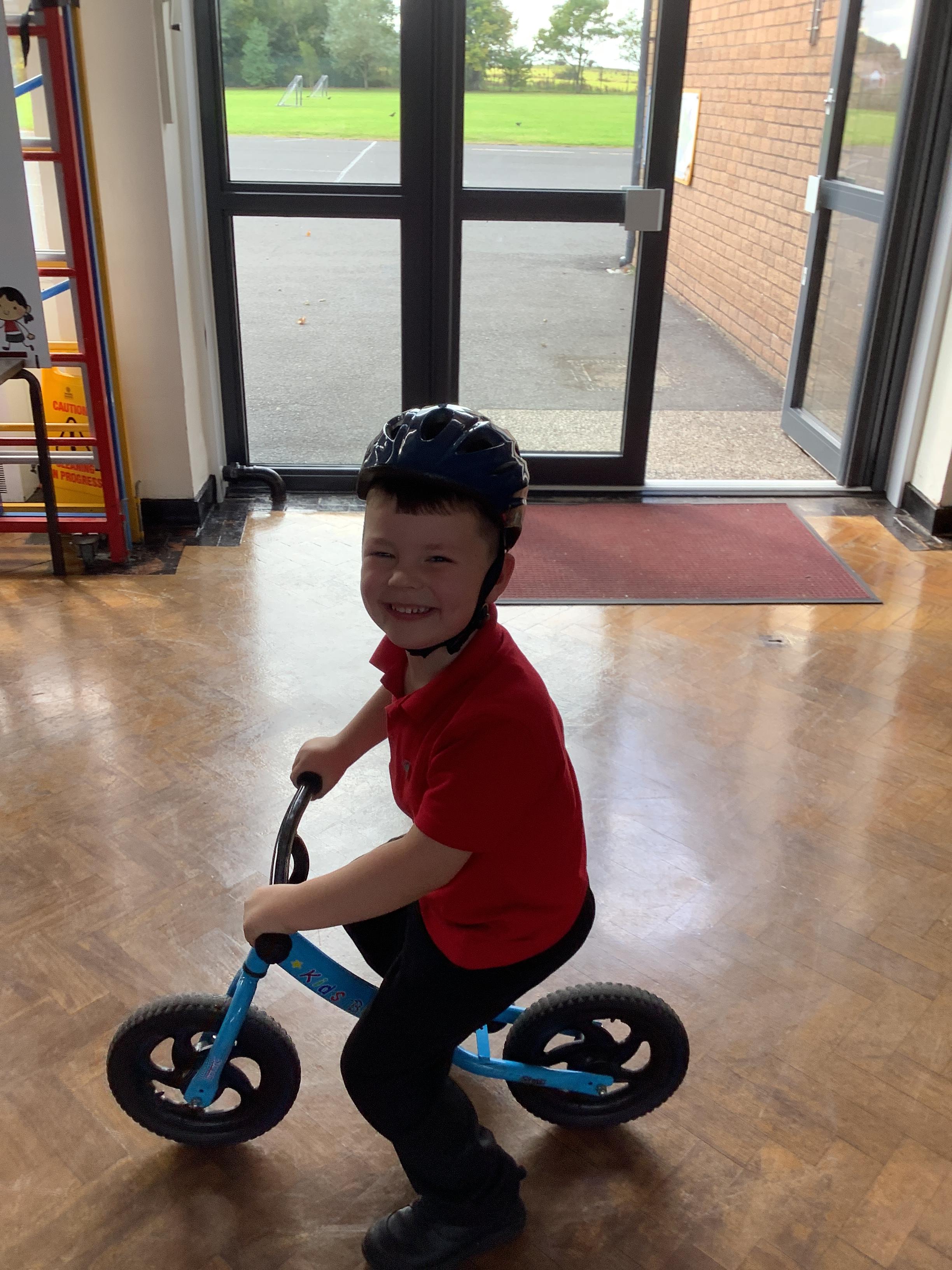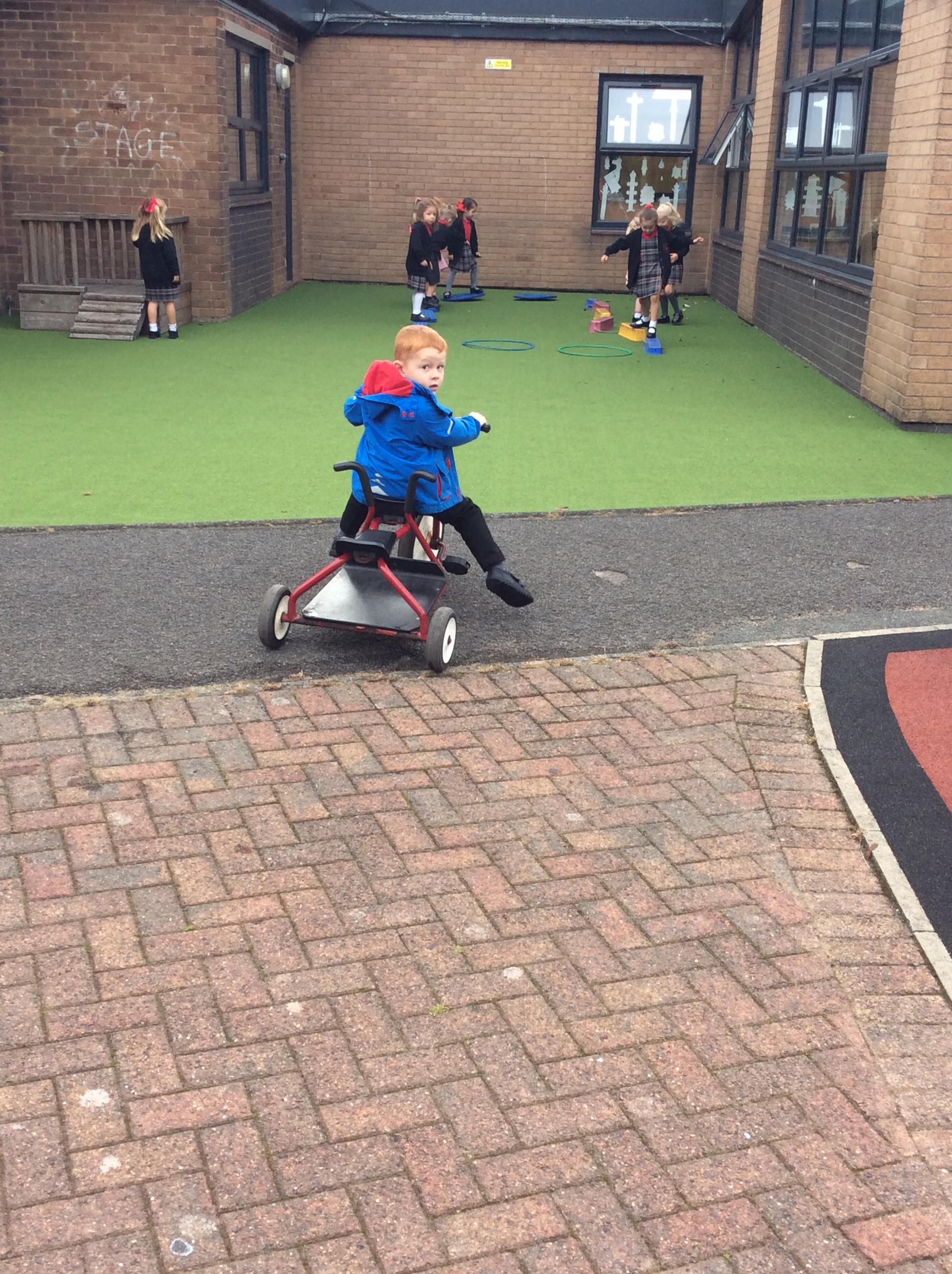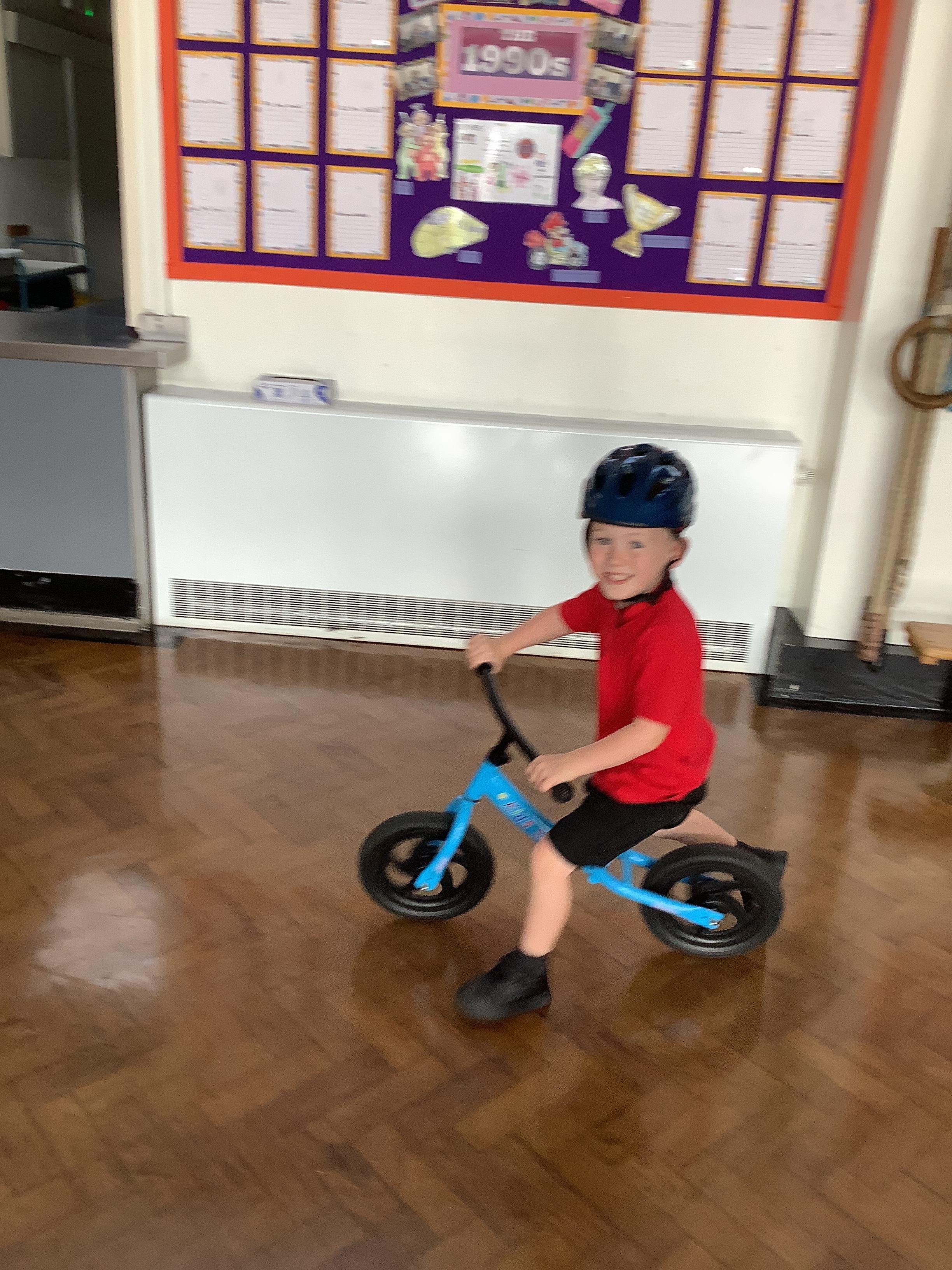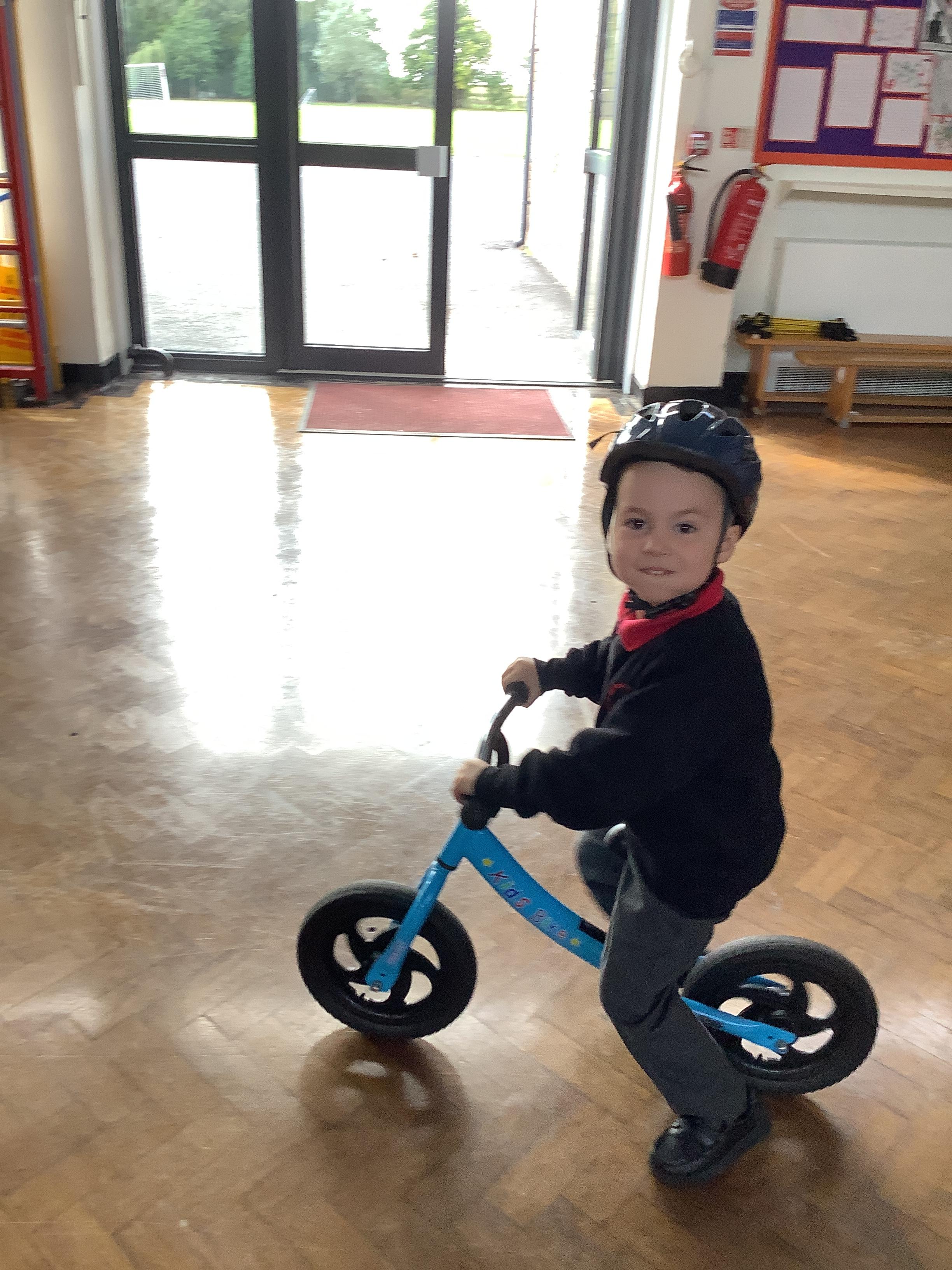 Practising balancing on the bikes and scooters.