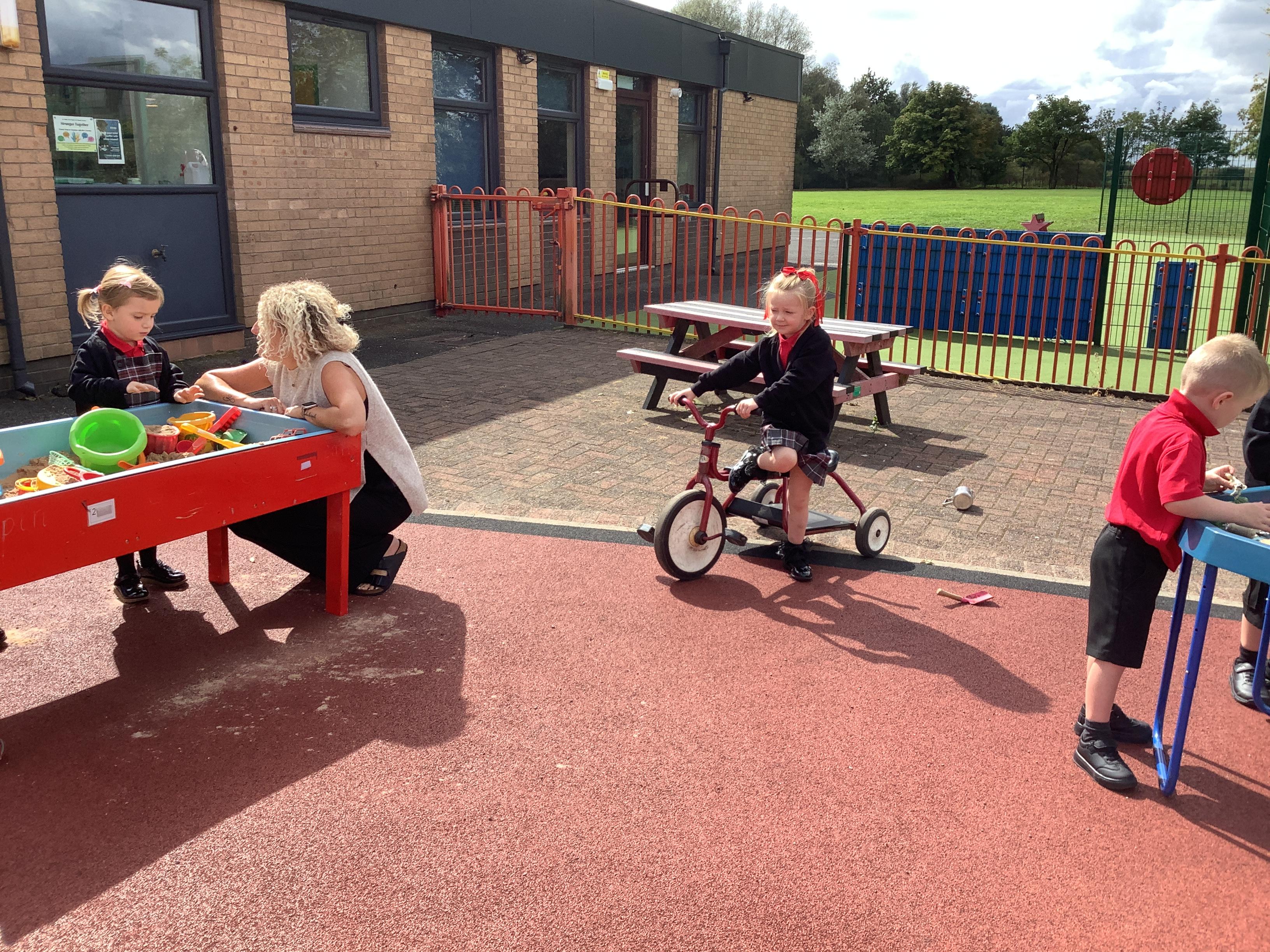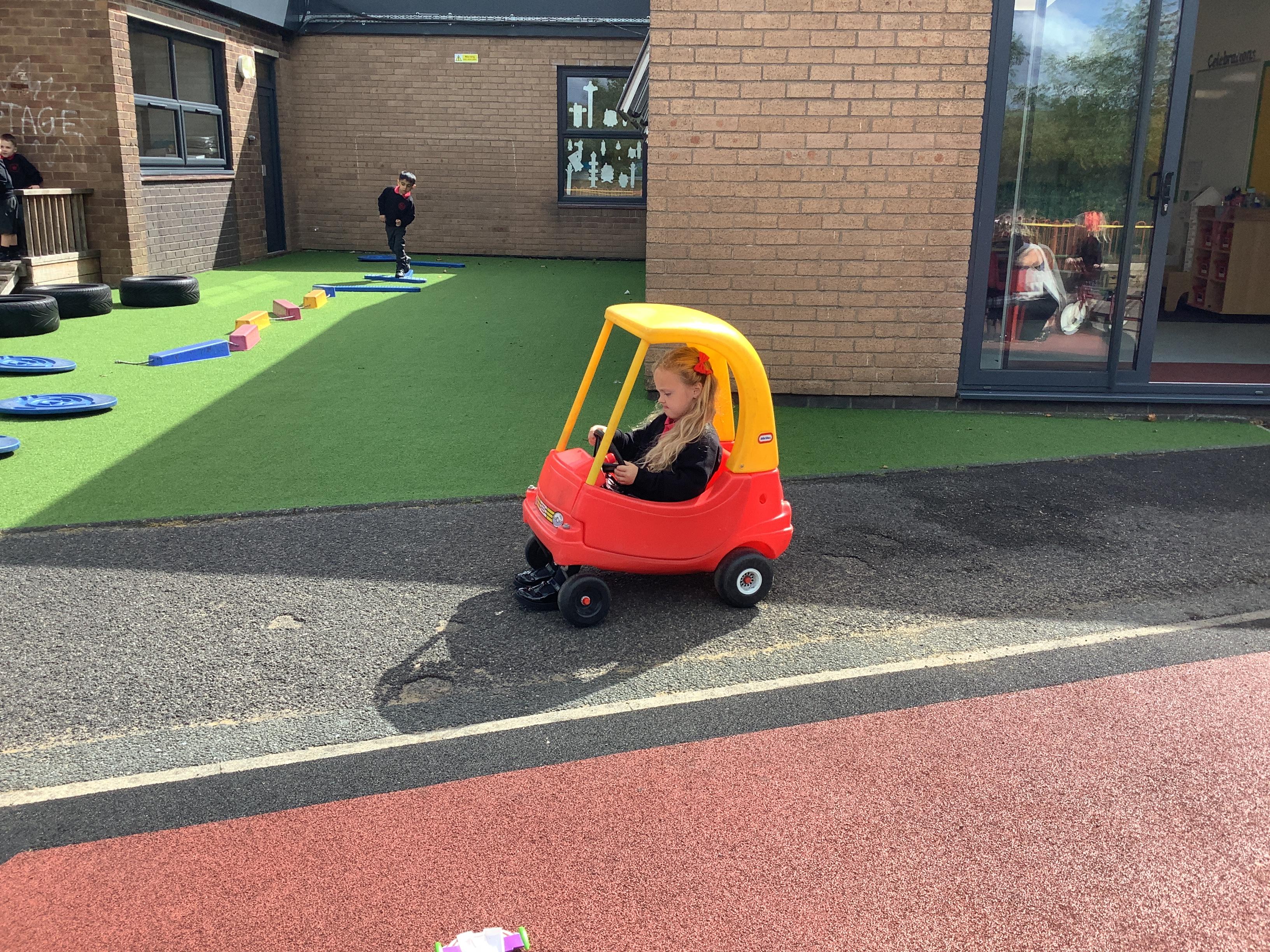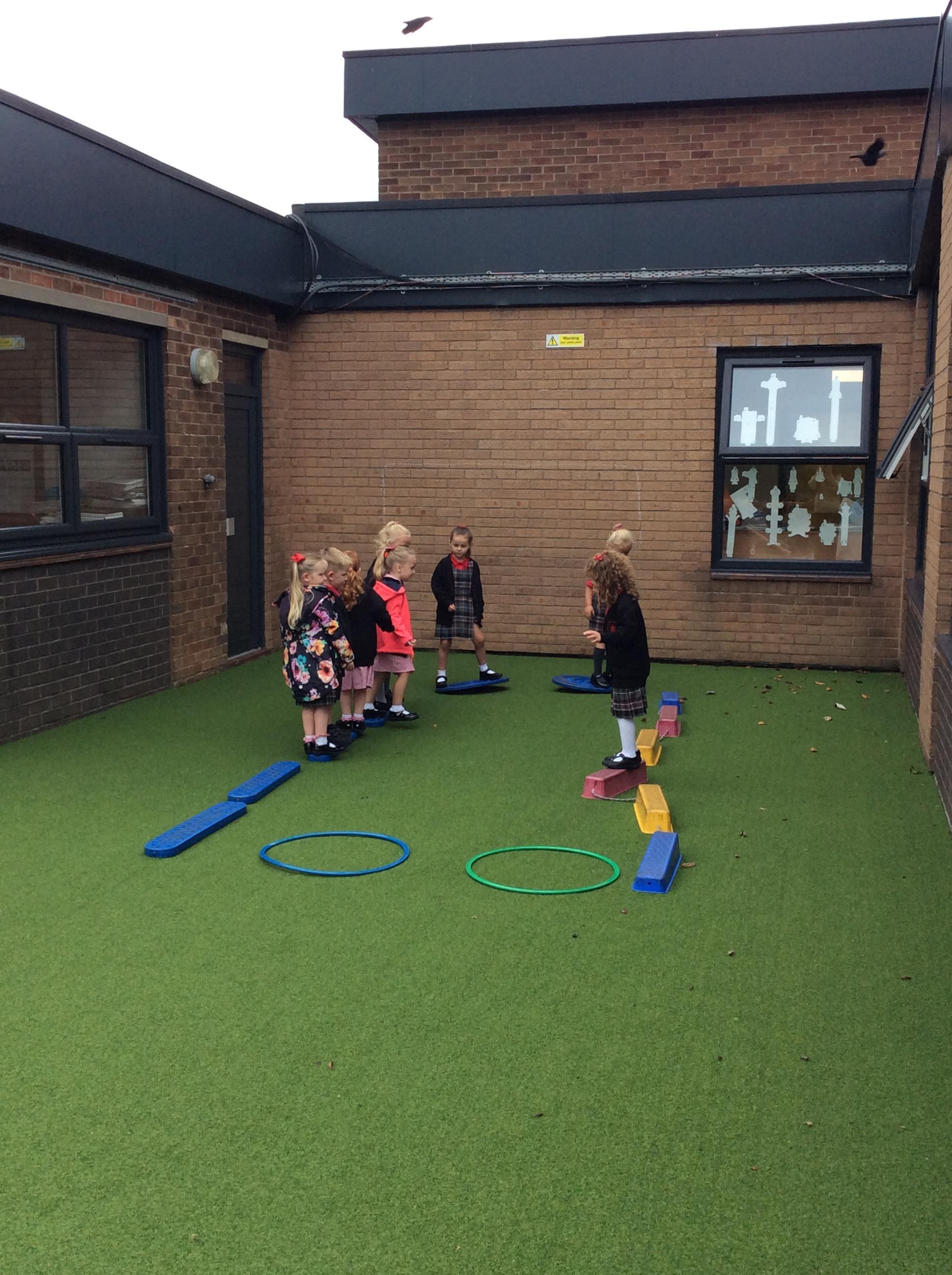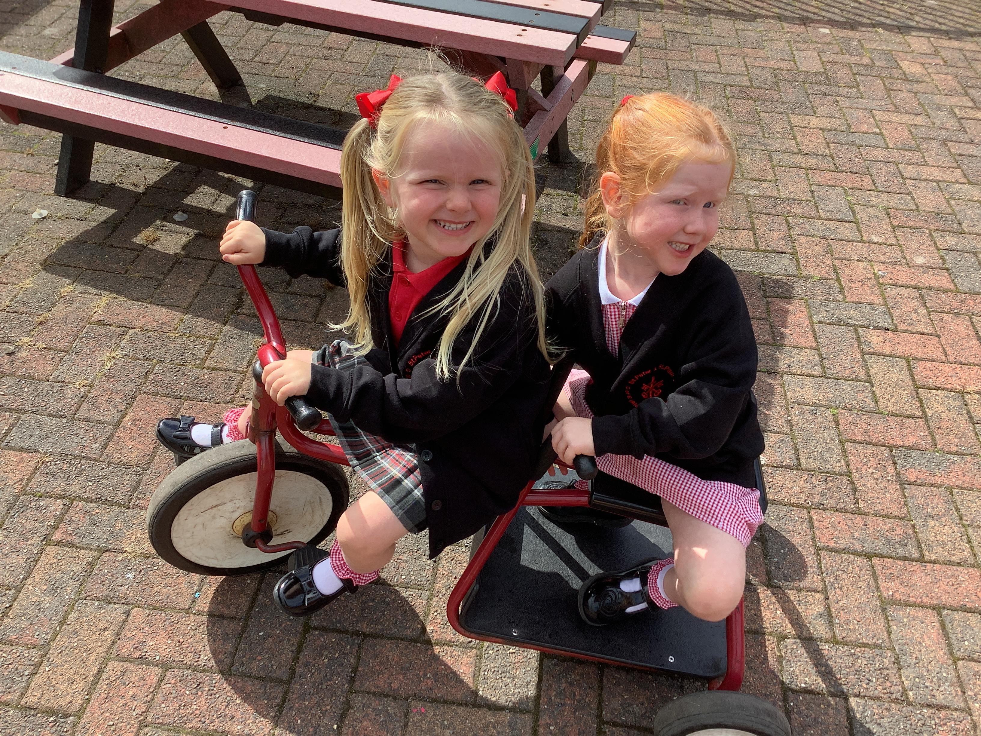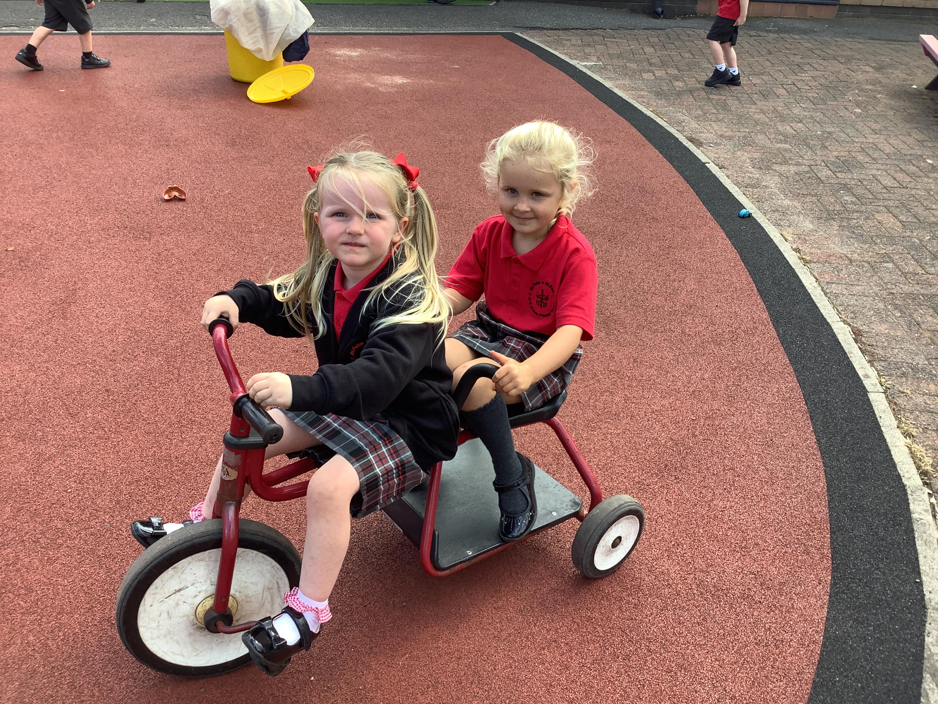 Practising balancing on the bikes and scooters.