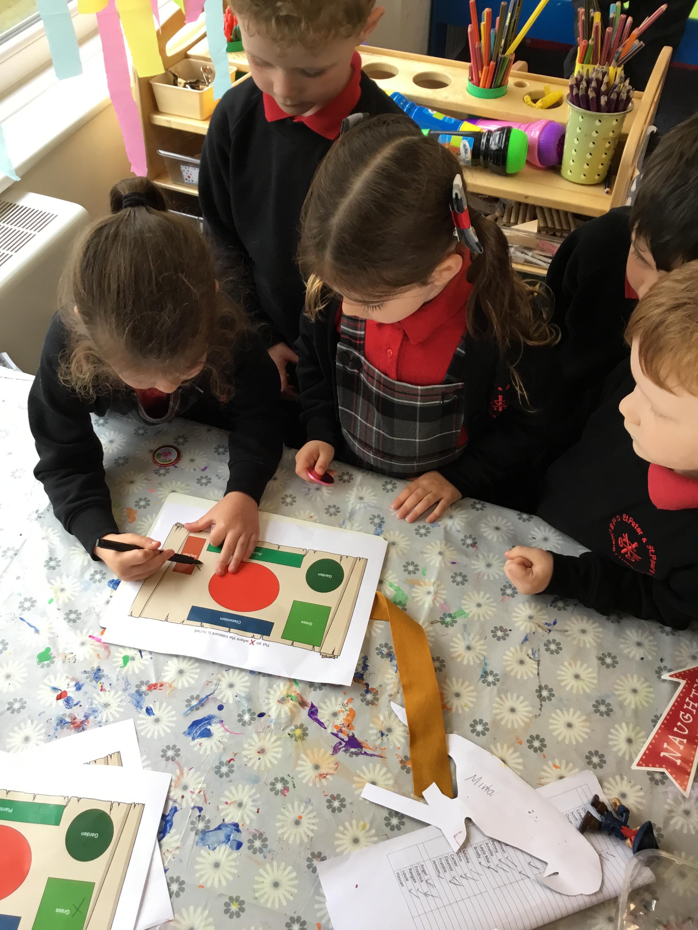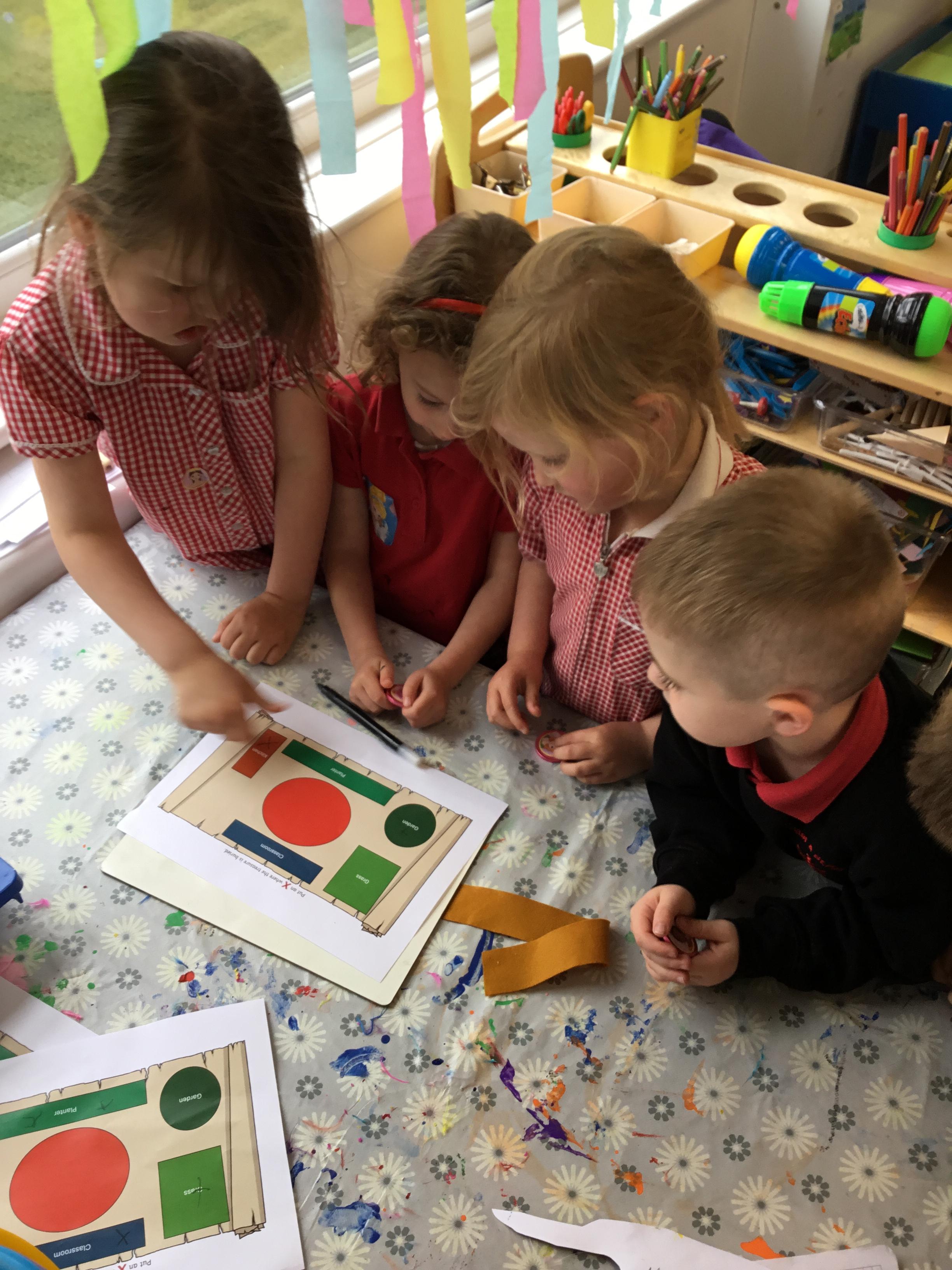 We had a treasure hunt and then marked it with an X on the map